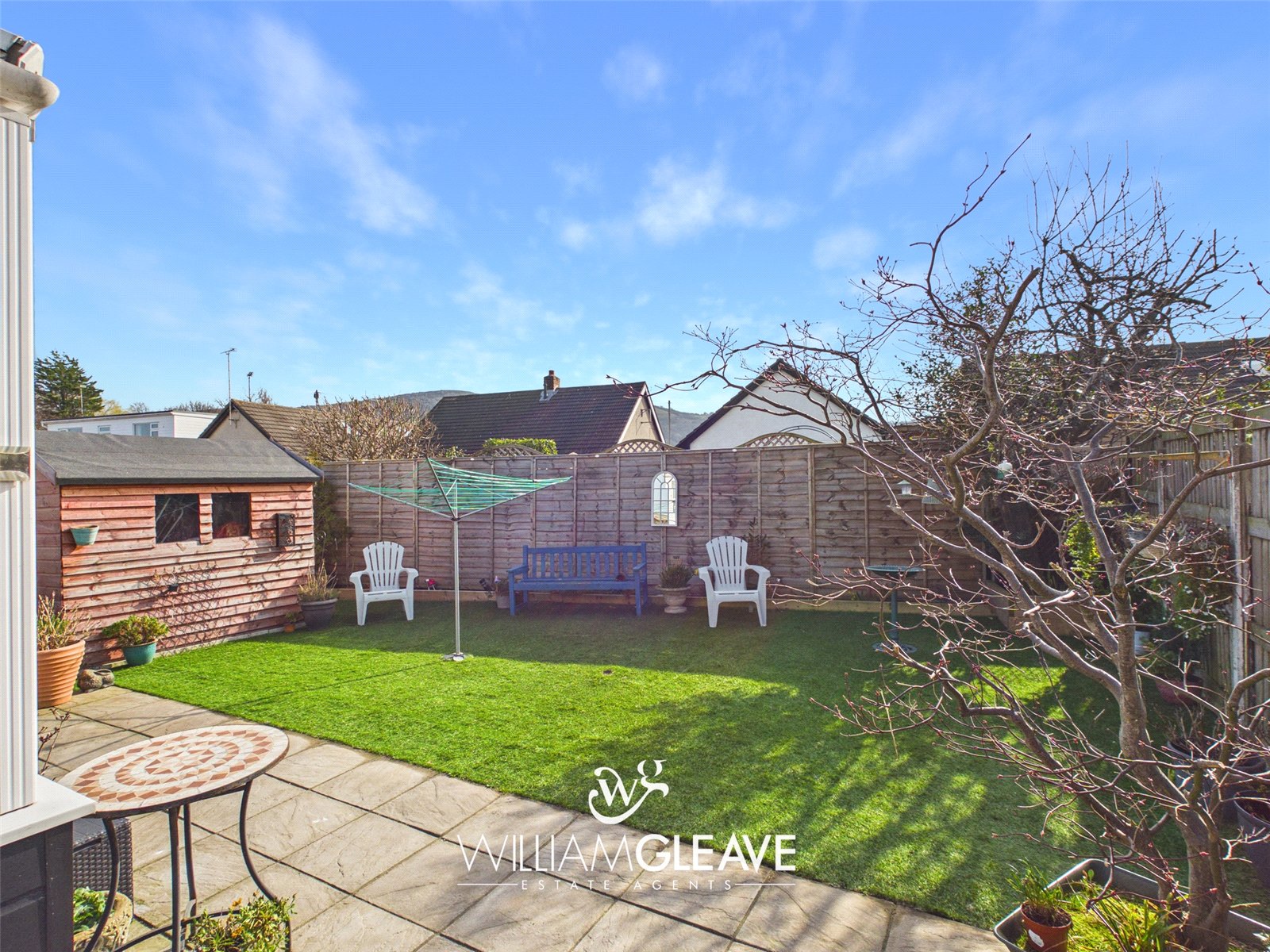 The front of the property features a private driveway providing parking space for two cars. An area of artificial grass, bordered with decorative chippings, adds a low-maintenance and attractive touch, with a brick wall positioned at the front of the grass for added definition. The driveway leads to a gate, providing access to the rear garden.