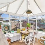 The conservatory is accessed directly from the kitchen and is a bright, versatile space, ideal for a variety of uses. Featuring wooden laminate flooring and double-glazed windows surrounding the room, it is filled with natural light throughout the day. Currently used as a utility and dining area, it offers ample space for a table and additional furnishings. Double doors lead directly out to the rear garden, creating a seamless flow between indoor and outdoor living and making it perfect for entertaining, relaxing, or enjoying the garden views.