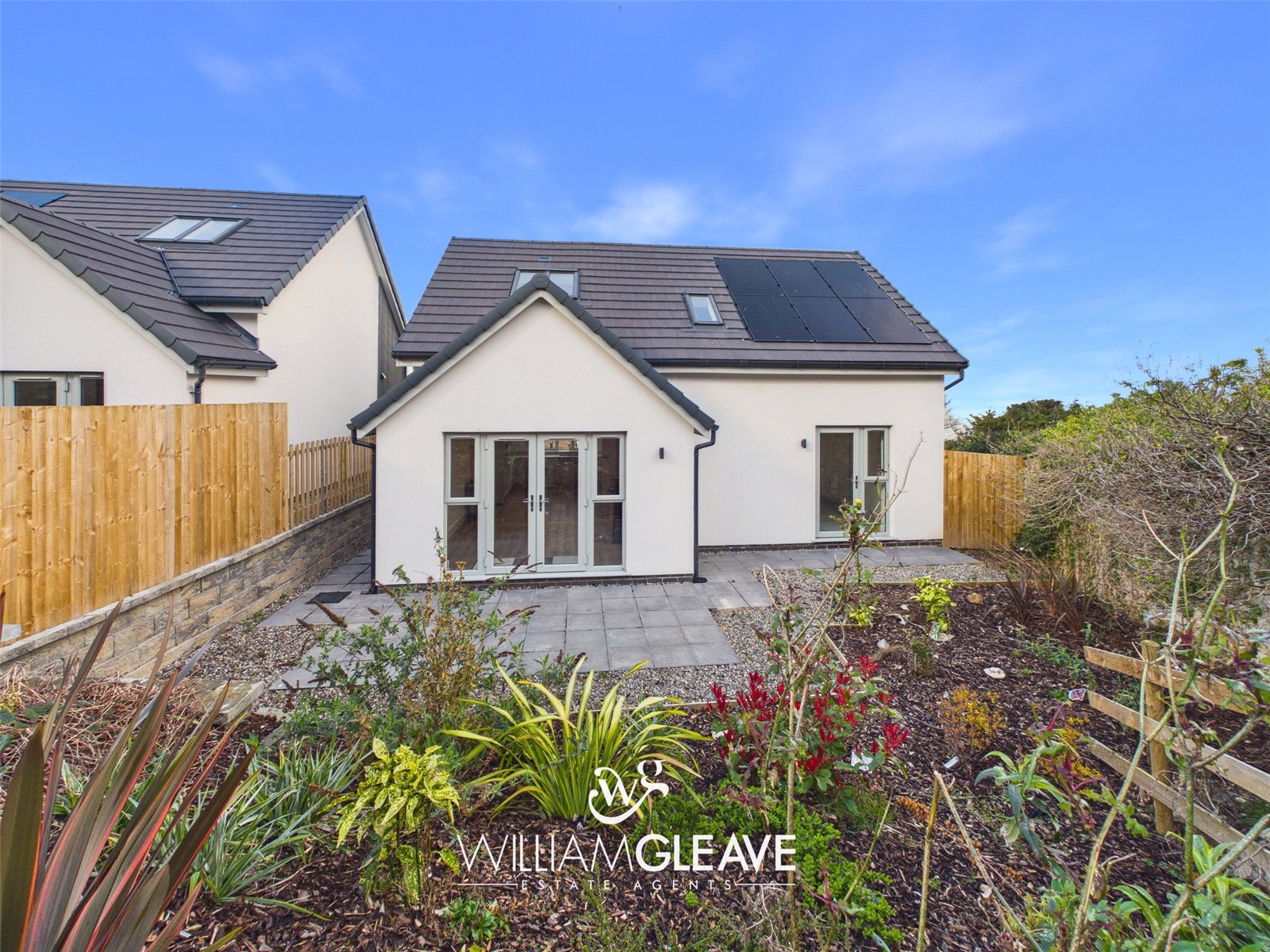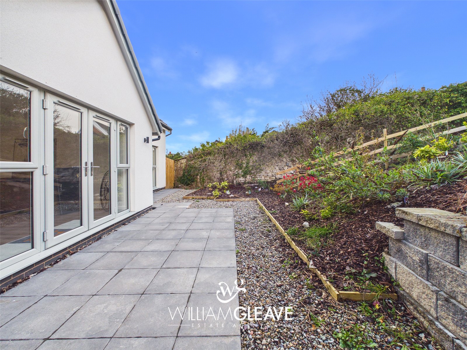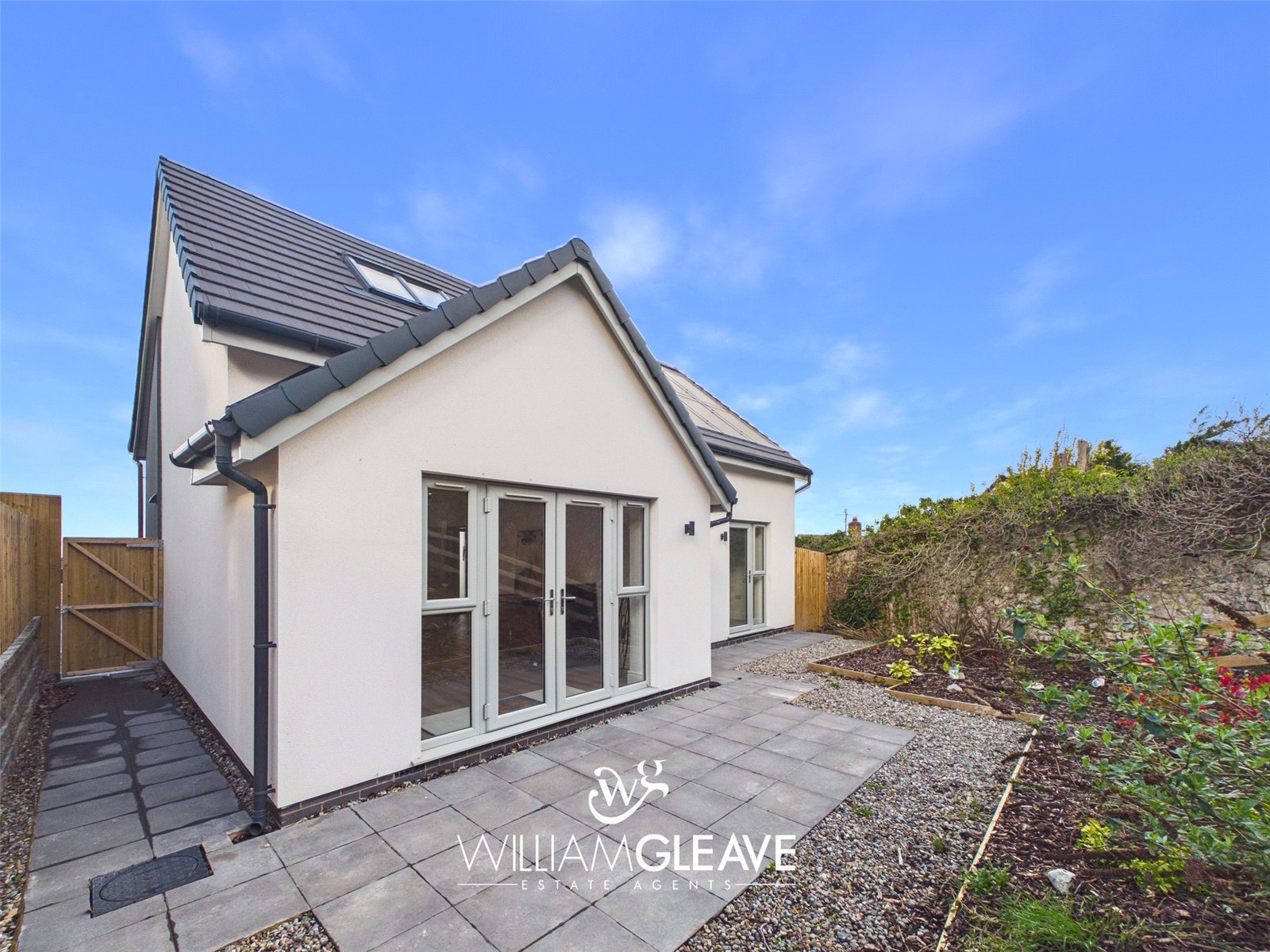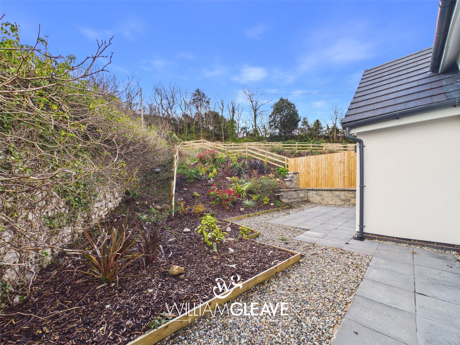 To the front of the property, off-road parking is provided and a patio-slab path bordered by gravel and finished with iron railings, leads up to the front door. A pathway continues down the side of the home to a wooden gate that offers access to the rear garden. The south-facing rear garden is designed for low maintenance, featuring a spacious patio area ideal for outdoor furniture and relaxing in the sun. There is also a section laid with bark, home to mature shrubs and plants. The garden is fully enclosed with wooden fencing, ensuring a good degree of privacy.