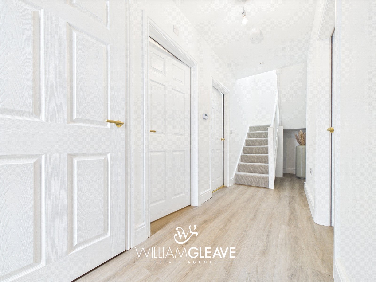 Stepping through the composite front door with frosted side panel, you are welcomed into a bright hallway giving access to the main living spaces and the downstairs shower room. The hallway also features a useful storage cupboard, power points, and a staircase rising to the first floor, creating a practical and well-organised entrance to the home.