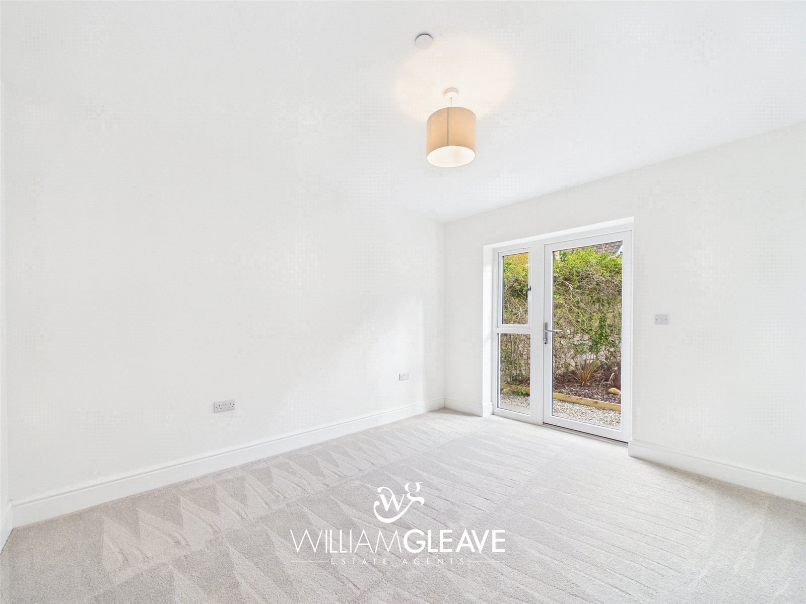 This spacious double bedroom features triple-glazed patio doors with matching side panels and an additional window, all opening directly onto the rear garden and filling the room with natural light. The bedroom benefits from Jack-and-Jill access to the shower room, offering added convenience and flexibility. The space is finished with carpet flooring, a TV point, and ample power points, creating a comfortable and practical room suitable for a variety of uses.