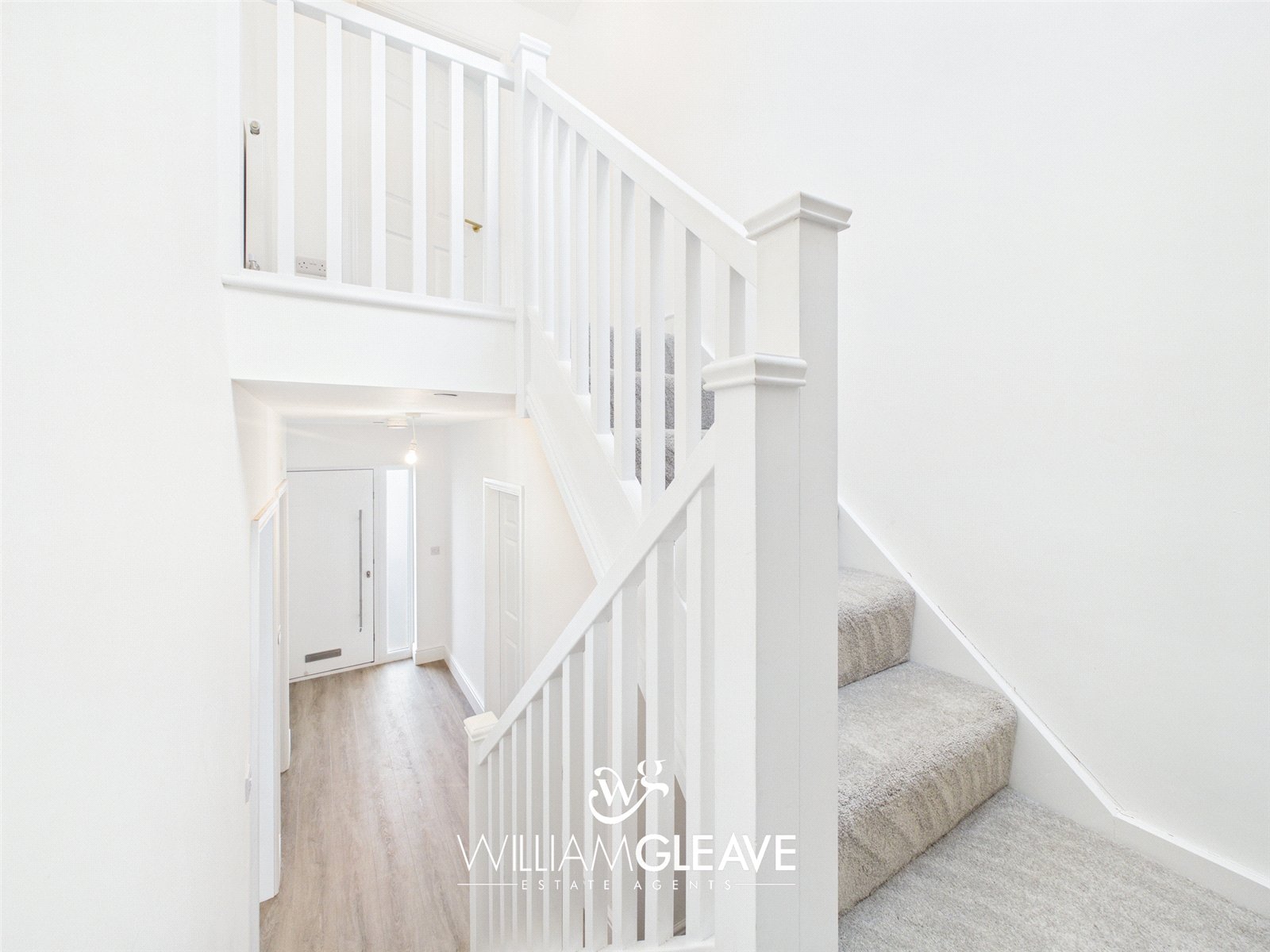 Stepping through the composite front door with frosted side panel, you are welcomed into a bright hallway giving access to the main living spaces and the downstairs shower room. The hallway also features a useful storage cupboard, power points, and a staircase rising to the first floor, creating a practical and well-organised entrance to the home.