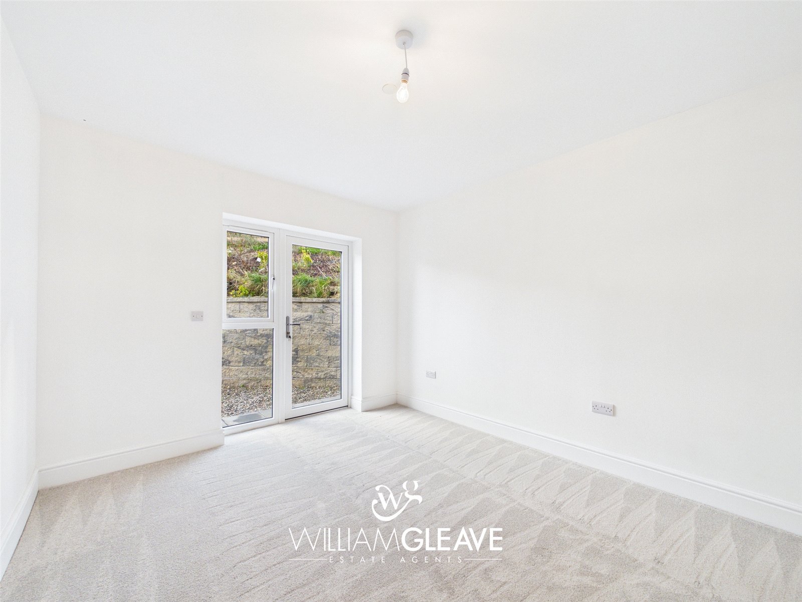 This spacious double bedroom features triple-glazed patio doors with matching side panels and an additional window, all opening directly onto the rear garden and filling the room with natural light. The bedroom benefits from Jack-and-Jill access to the shower room, offering added convenience and flexibility. The space is finished with carpet flooring, a TV point, and ample power points, creating a comfortable and practical room suitable for a variety of uses.