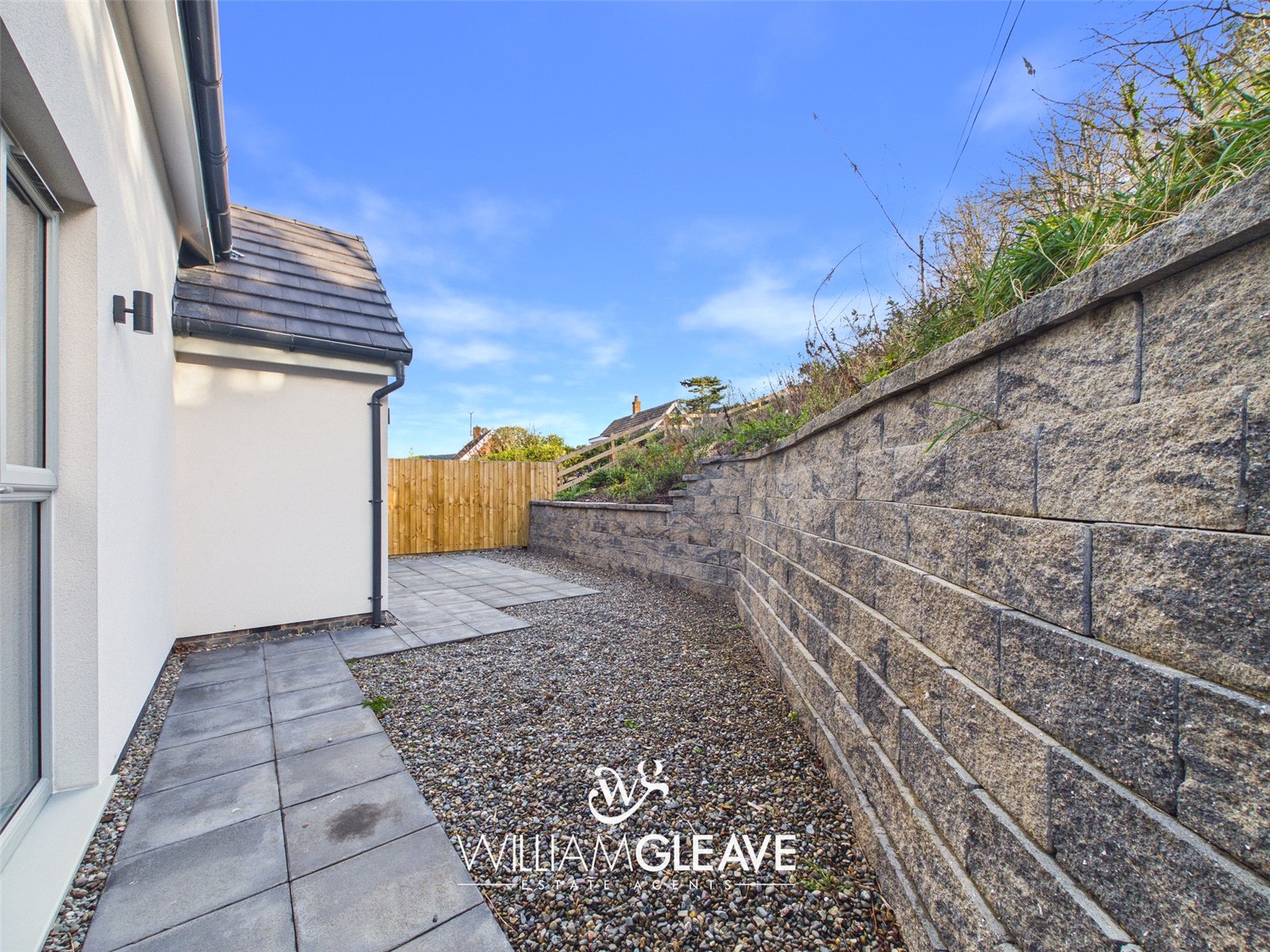 To the front of the property, off-road parking is provided and a patio-slab path bordered by gravel and finished with iron railings, leads up to the front door. A pathway continues down the side of the home to a wooden gate that offers access to the rear garden. The south-facing rear garden is designed for low maintenance, featuring a spacious patio area ideal for outdoor furniture and relaxing in the sun. There is also a section laid with bark, home to mature shrubs and plants. The garden is fully enclosed with wooden fencing, ensuring a good degree of privacy.