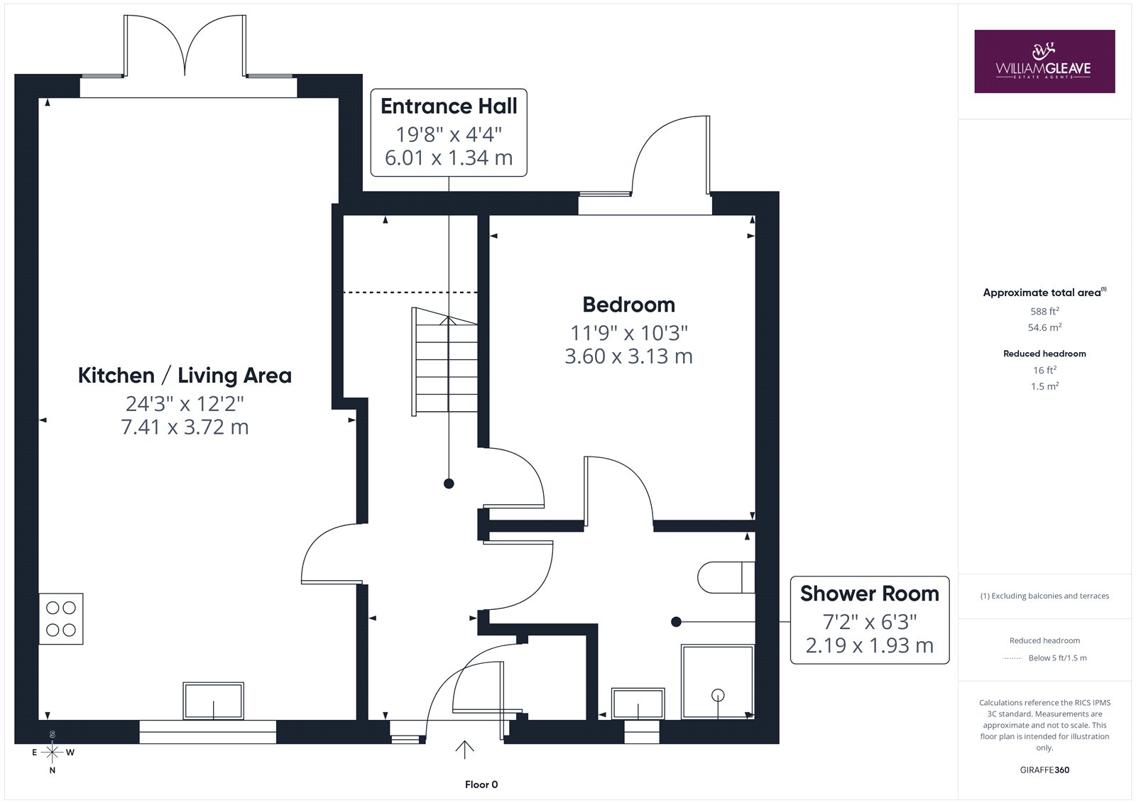 The accommodation briefly comprises an entrance hallway, an open-plan living, dining and kitchen area, a ground-floor bedroom, and a shower room. To the first floor, there is a further bedroom, a walk-in wardrobe space, and a bathroom.