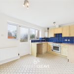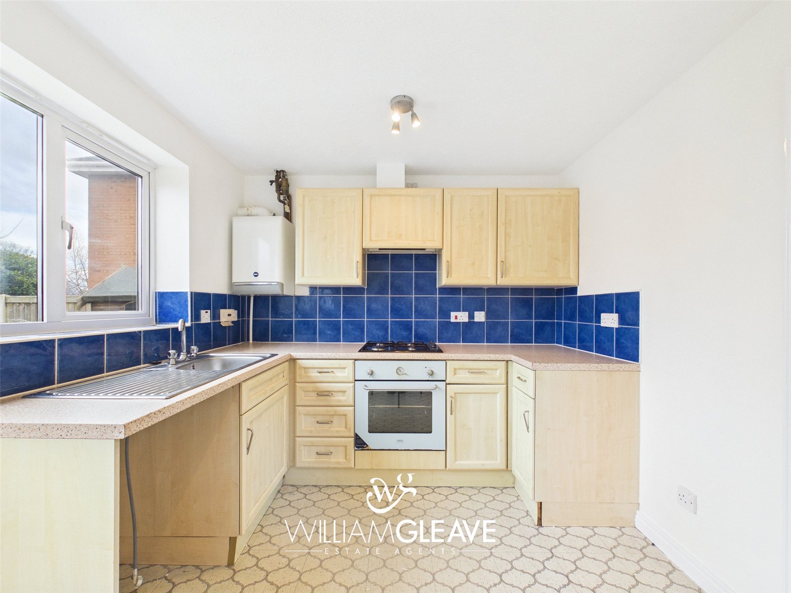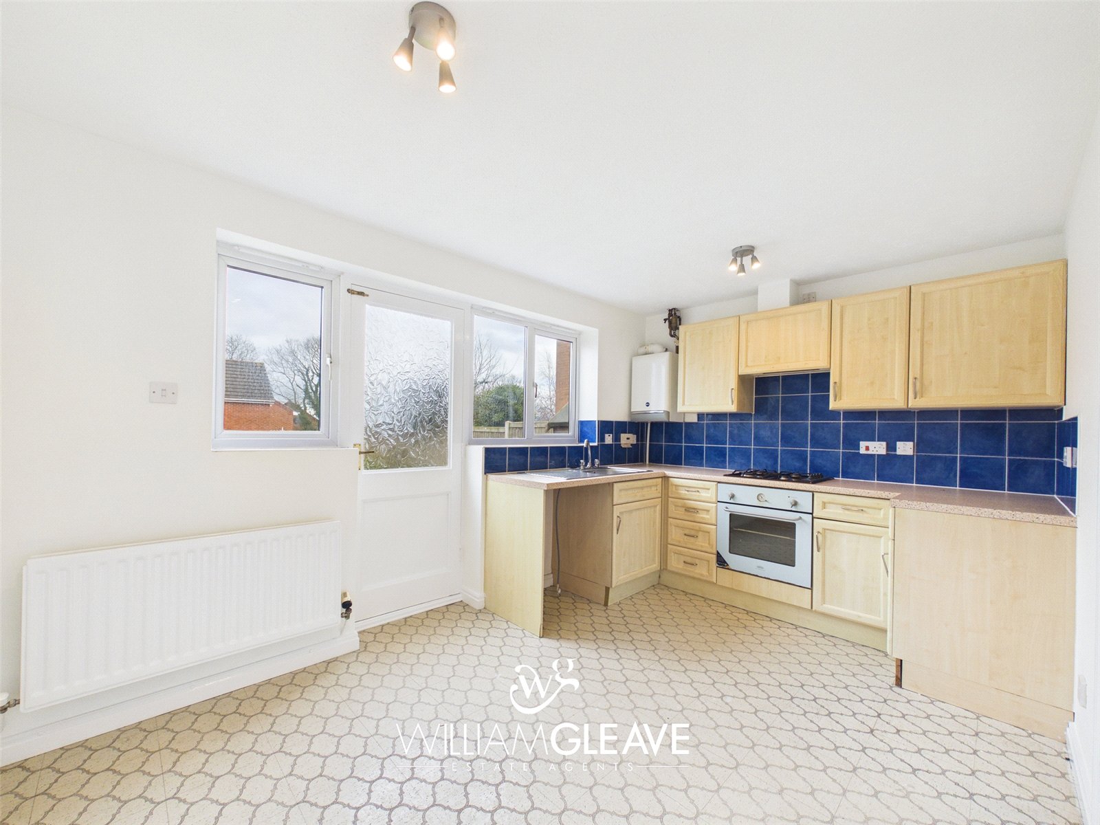 The kitchen is fitted with a range of wall, drawer and base units with complementary worktop surfaces over, incorporating an inset stainless-steel sink with drainer and mixer tap. Integrated appliances include an oven, four-ring gas hob and extractor fan, with additional space available for further white goods. The room benefits from a tiled splashback, wall-mounted boiler, windows to the rear elevation, radiator, power points and a useful under-stairs storage cupboard. There is ample space to accommodate a dining table, making it ideal for family meals and entertaining. A door provides direct access to the rear garden.
