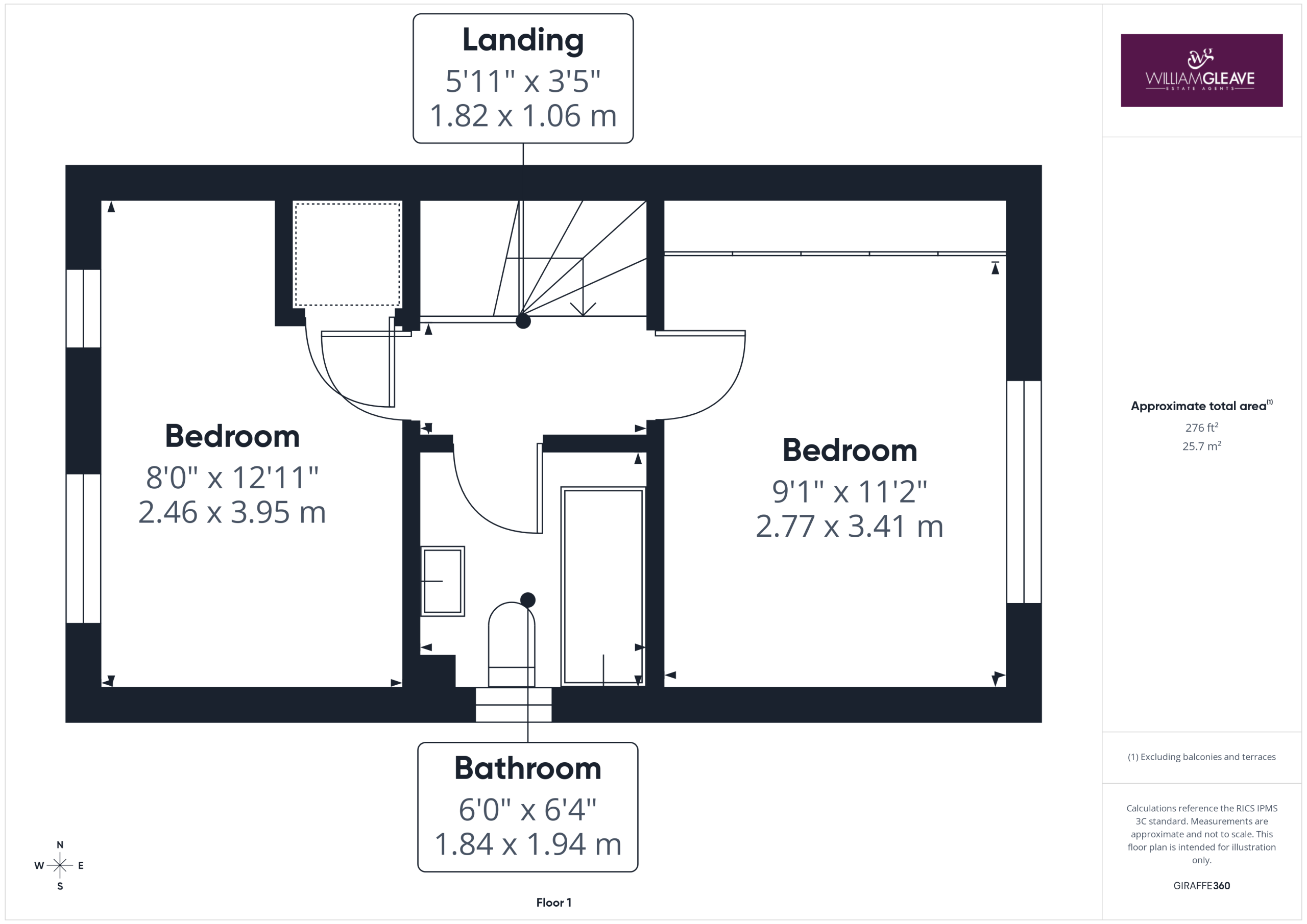 There are doors leading off to bedrooms and bathroom, loft access point and a power point.