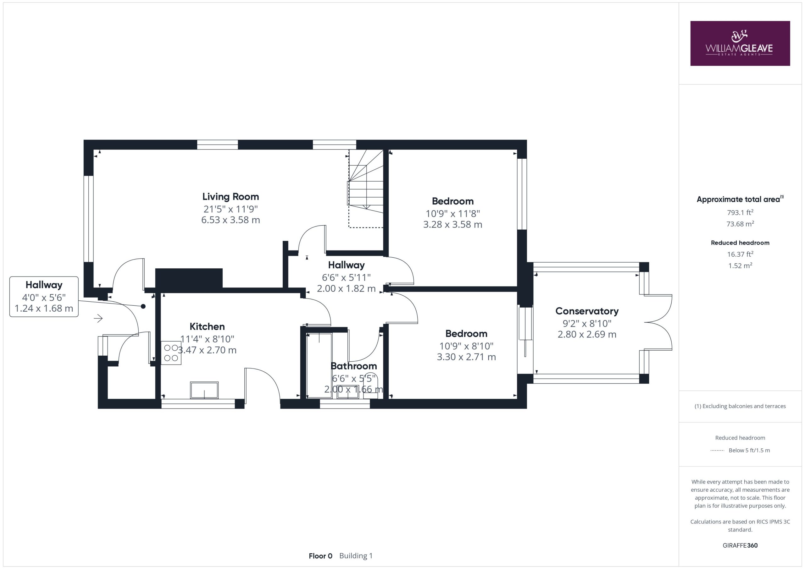 White three piece comprises; low level W/C, pedestal wash hand basin with stainless steel tap over, panel 'P' shaped bath with stainless steel mixer tap and shower over. Frosted double glazed window to the rear elevation, fully tiled wall and floors and heated towel radiator.