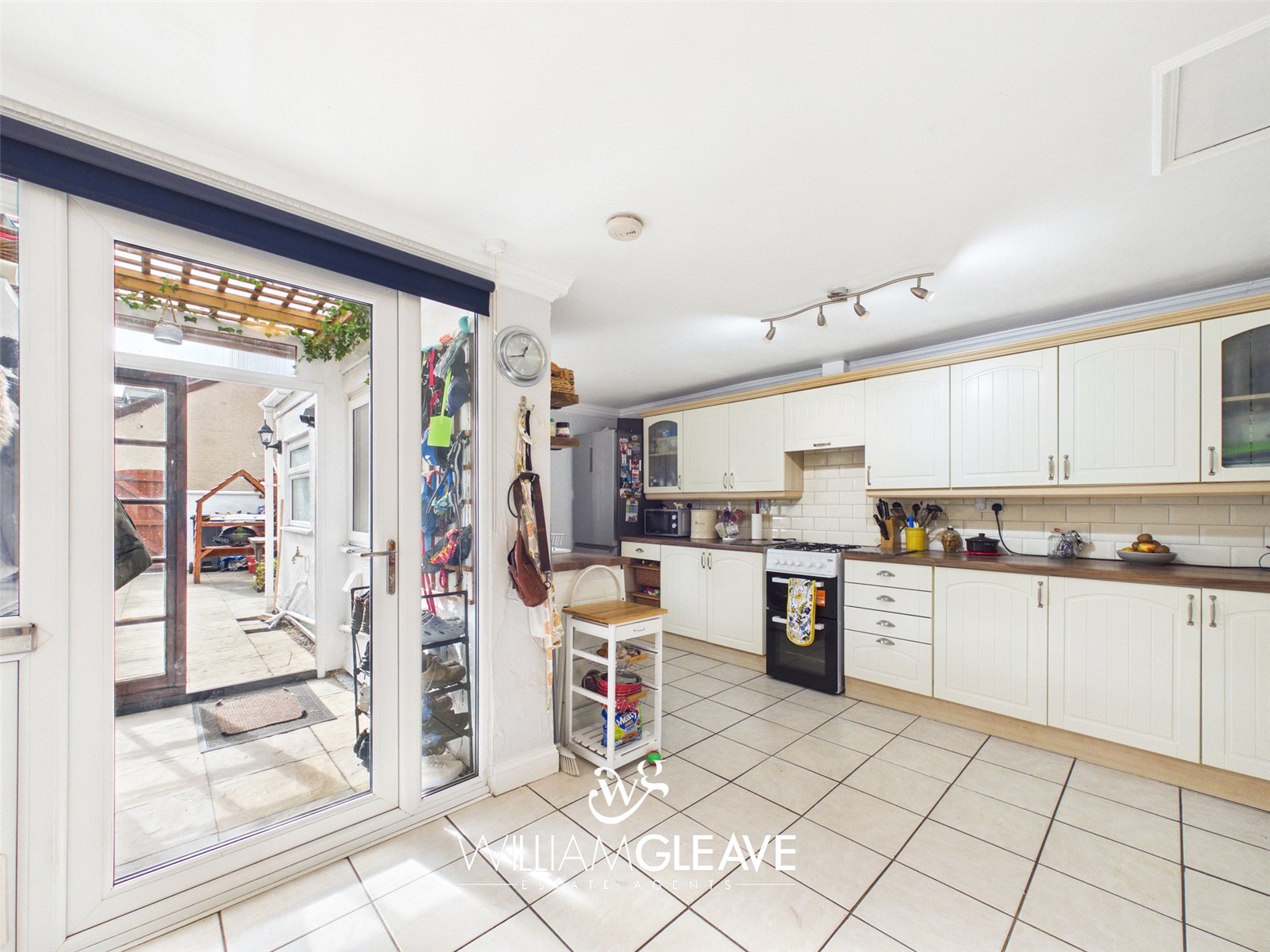 A generous-sized kitchen offering plenty of room for day-to-day use, with a range of units and ample worktop space to suit a busy household. There is a window to the rear elevation while a glazed door provides direct access out to the garden, creating a nice connection between indoor and outdoor space. The kitchen also benefits from a door leading through to the bathroom, along with a radiator and multiple power points, making it both a practical and functional area of the home.