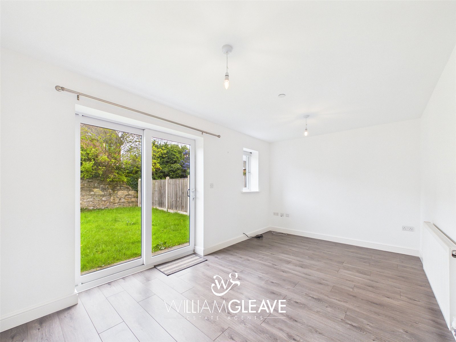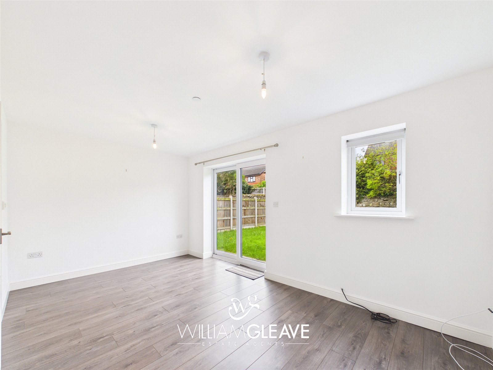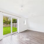 A bright and airy living space featuring a double glazed window to the rear elevation and double glazed French doors leading out to the garden. Finished with wood-effect laminate flooring, a radiator, TV point, and ample power points.