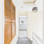 Stepping through a white frosted double-glazed door, you are welcomed into a small yet enclosed entrance hallway, finished with crisp white painted walls that create a bright and clean first impression. A frosted window allows natural light to filter in while maintaining privacy, enhancing the sense of space.
