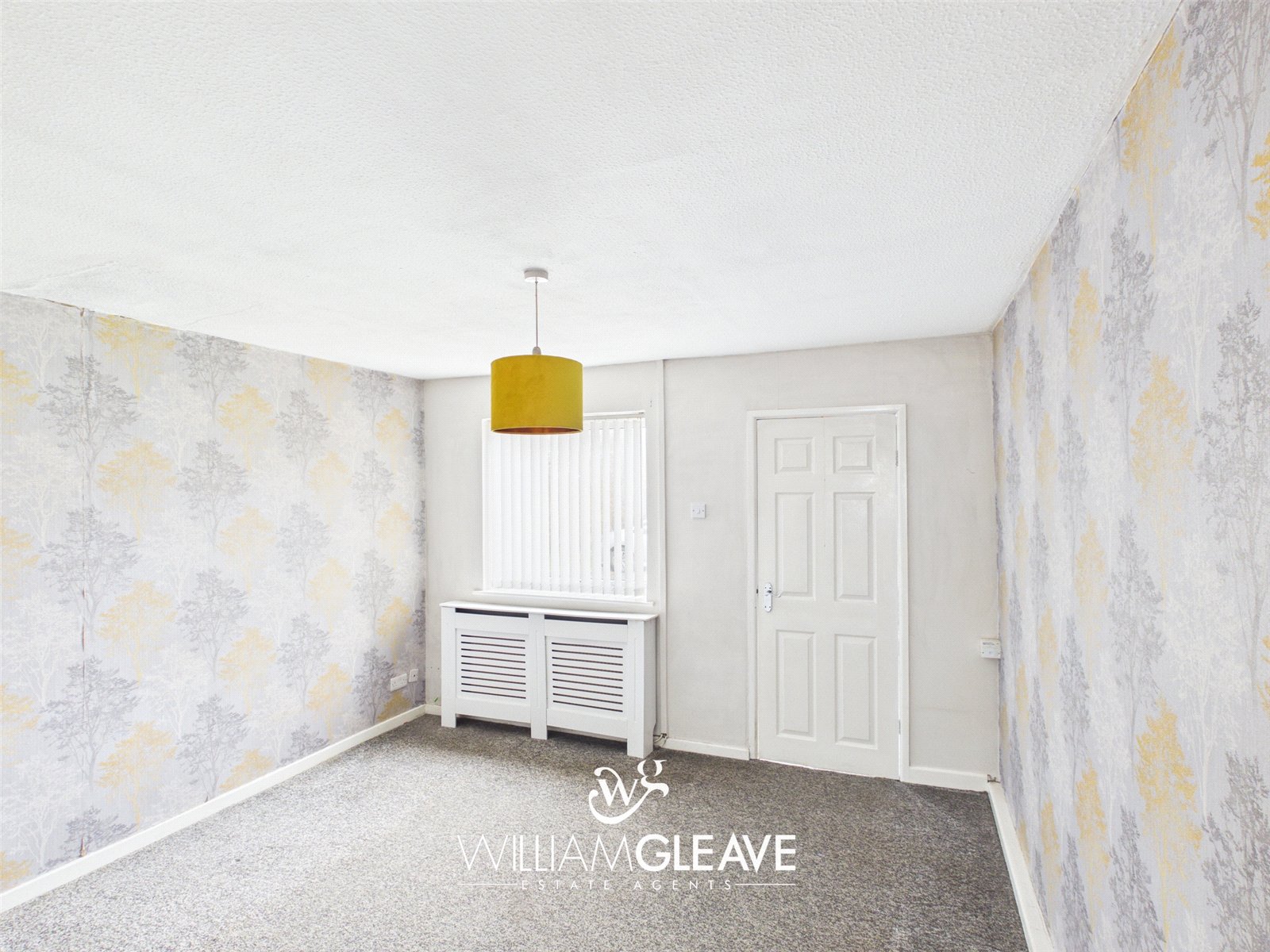 The first room you enter is the living room, a spacious and well-proportioned living area ideal for both relaxing and entertaining. The side walls are finished in crisp white paint, while the front and rear walls are tastefully wallpapered, adding character and contrast to the space.