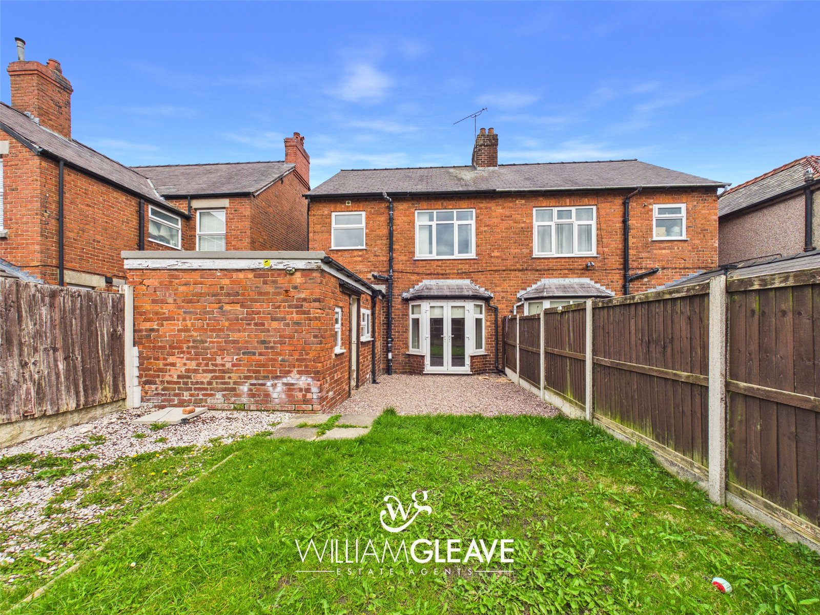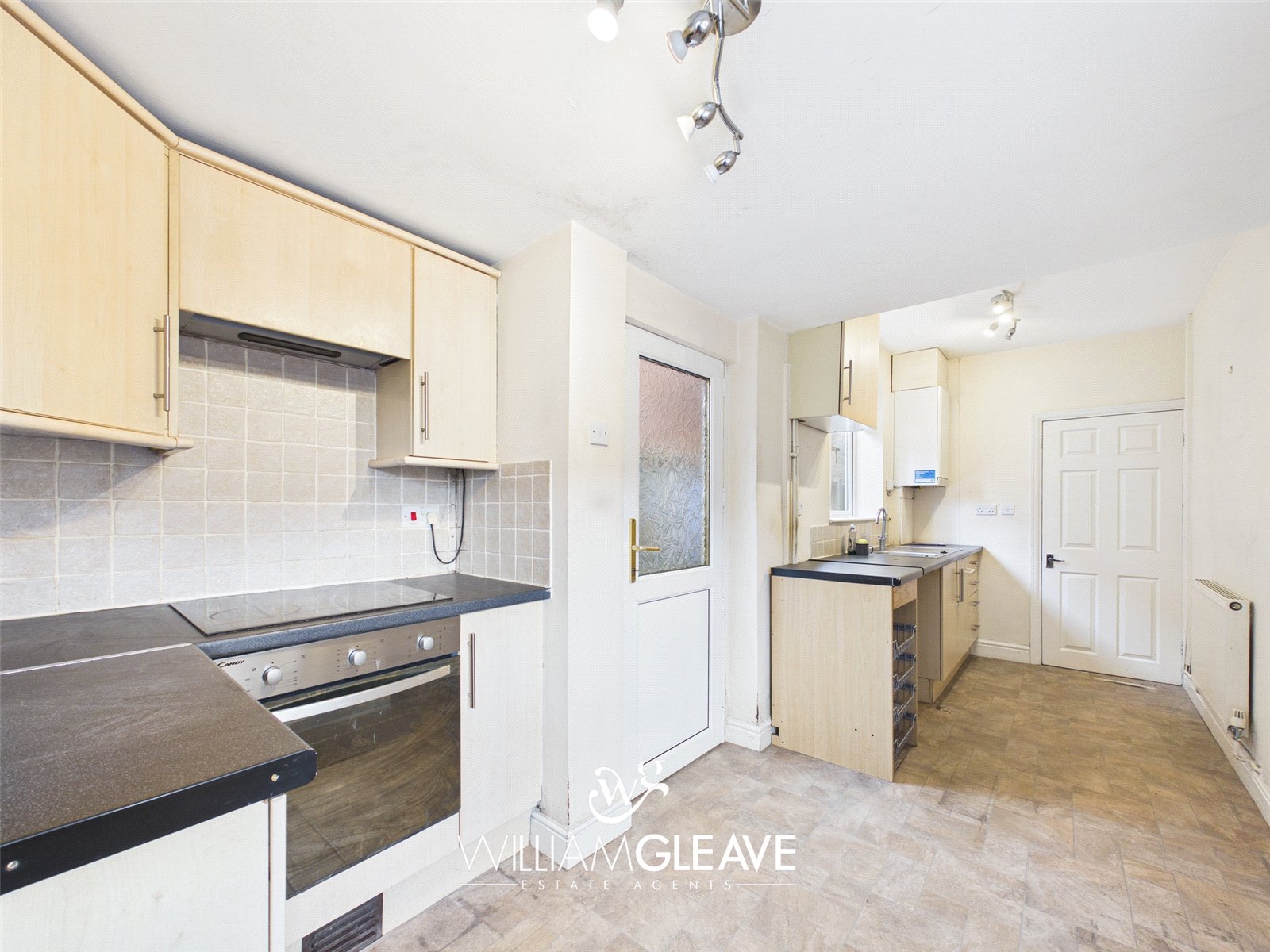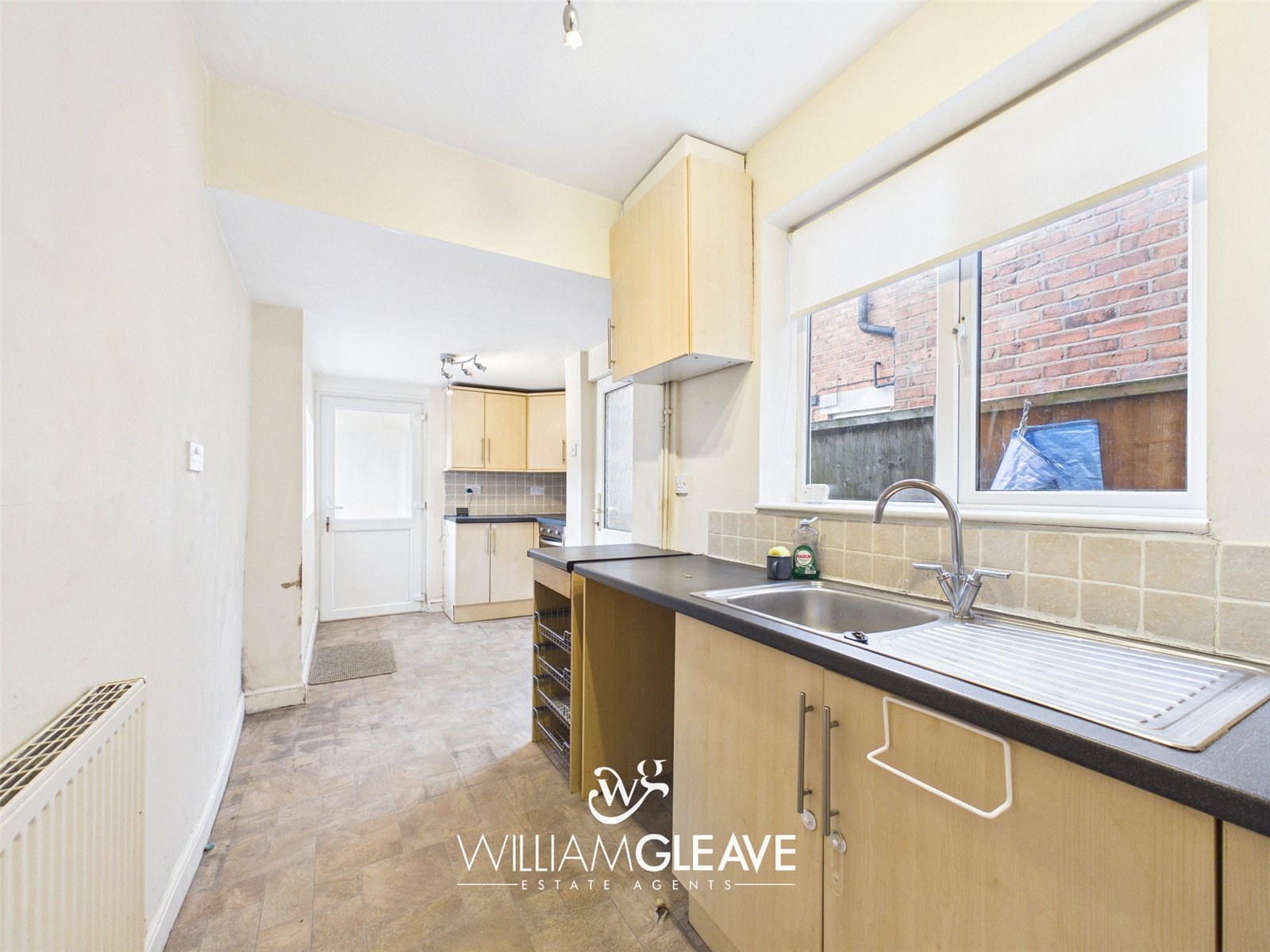 The kitchen offers a practical layout with plenty of potential and is in need of modernisation, making it an ideal space to put your own stamp on. It benefits from a window and door to the side elevation, along with an additional window and door to the rear elevation, allowing for excellent natural light and convenient access to the outside. A radiator provides warmth and there are power points in place.