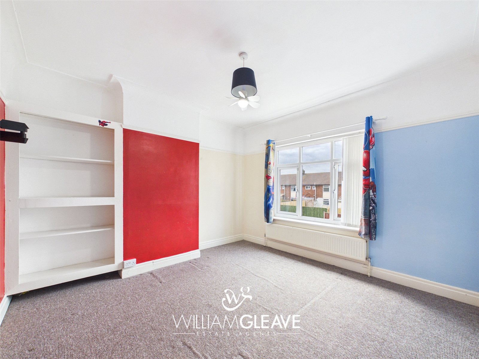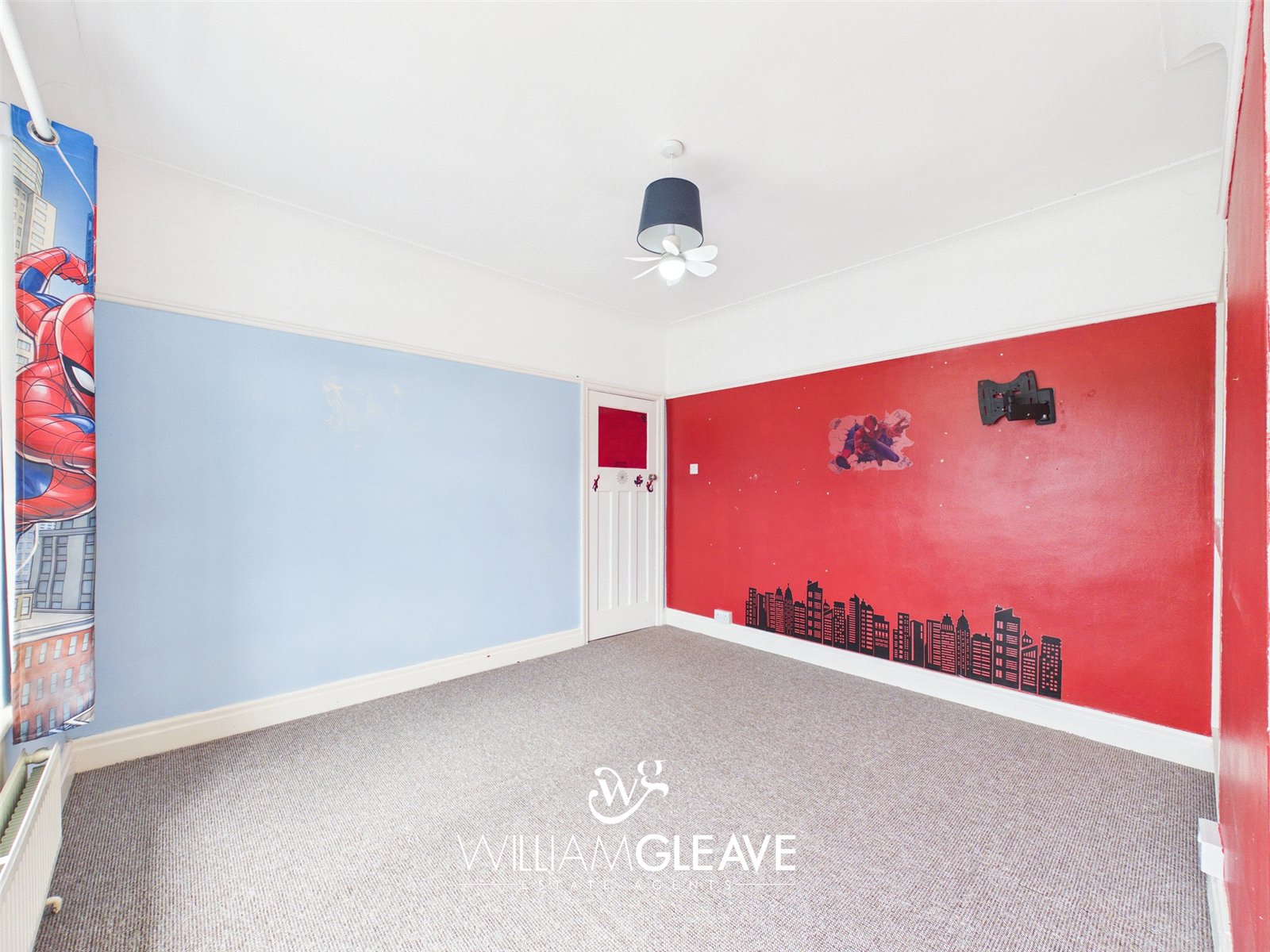 The third bedroom is a comfortable single room, featuring a window to the front elevation. A radiator provides warmth, and there are power points in place, making it an ideal space for a child’s bedroom, guest room, or home office.