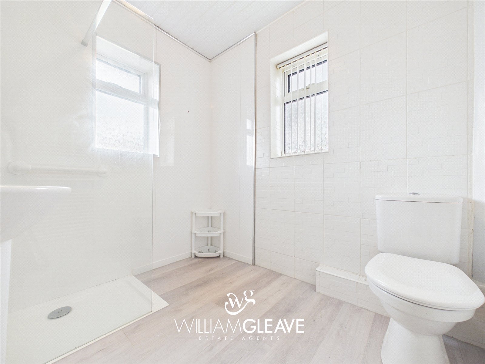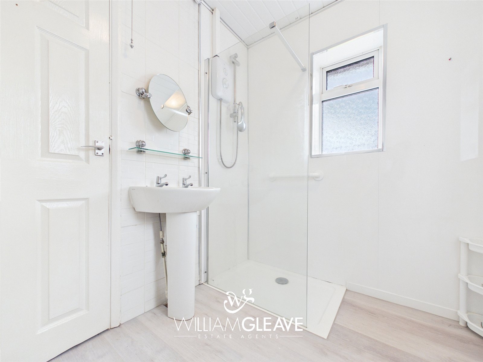 The shower room is modern and well presented, featuring frosted double glazed windows to both the front and rear elevations. It comprises a low-level WC, pedestal wash basin, and a walk-in shower with electric shower unit. The room is complete with a towel radiator, adding both comfort and convenience.