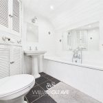 The kitchen includes an integrated dishwasher, a 1.5 bowl sink and drainer with a swan-neck mixer tap and space for a range cooker. Three traditional double-glazed windows to the rear elevation provide plenty of natural light. A wooden door leads to a walk-in pantry with lighting, a character alcove, and a frosted window to the rear elevation.