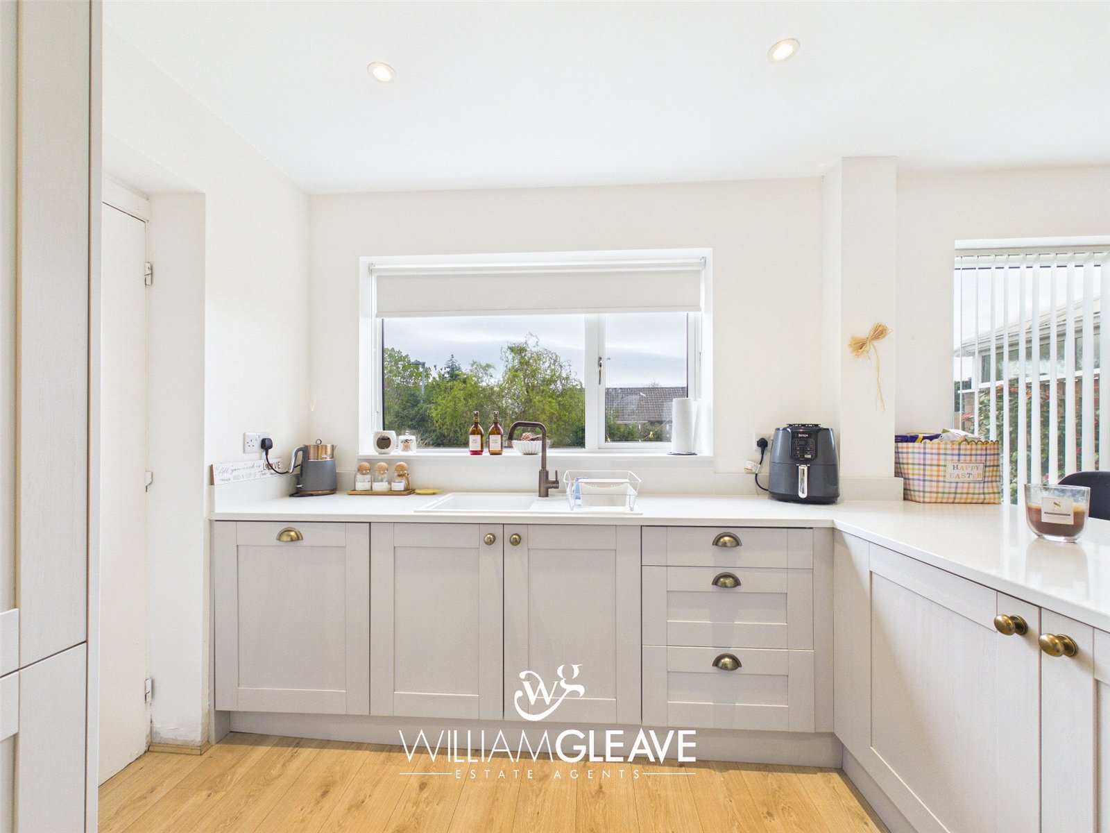 The kitchen/diner is a bright and stylish space, with two windows to the rear elevation. The modern kitchen is fitted with attractive shaker-style units and integrated appliances, offering both functionality and a timeless look. There is a breakfast bar for casual dining, as well as ample space for a dining table, making it perfect for both everyday living and entertaining.