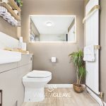 The bathroom is finished to a modern standard, featuring a stylish three-piece suite comprising a bath with dual shower head over, a vanity wash hand basin and a low-level WC. A contemporary mirror with built-in backlighting adds a sleek finishing touch. The room also benefits from a towel radiator and a frosted window to the rear elevation.