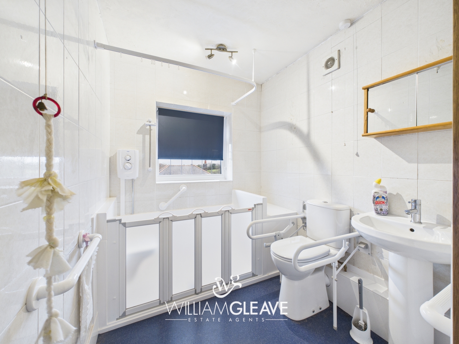 Located to the front of the property, the main bathroom features an adaptable suite comprising an enclosed bath with overhead shower, toilet, and wash basin. This well-proportioned space offers plenty of potential to be modernised and styled to suit the needs of everyday family life.
