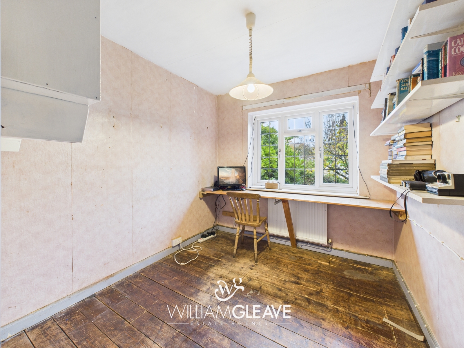 Previously used as a study, this double bedroom offers exposed wooden floorboards and a large rear-facing window that fills the room with natural light. Overlooking the rear garden, it’s a versatile space ideal as a bedroom, home office, or hobby room.