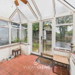 A charming wooden conservatory positioned to the rear of the property, featuring double wooden doors that open out onto a large patio area and garden. The room retains its character with original red quarry tile flooring and serves as a lovely connection between the indoor and outdoor spaces. From here, there is access to a downstairs W/C complete with a sink for added convenience.