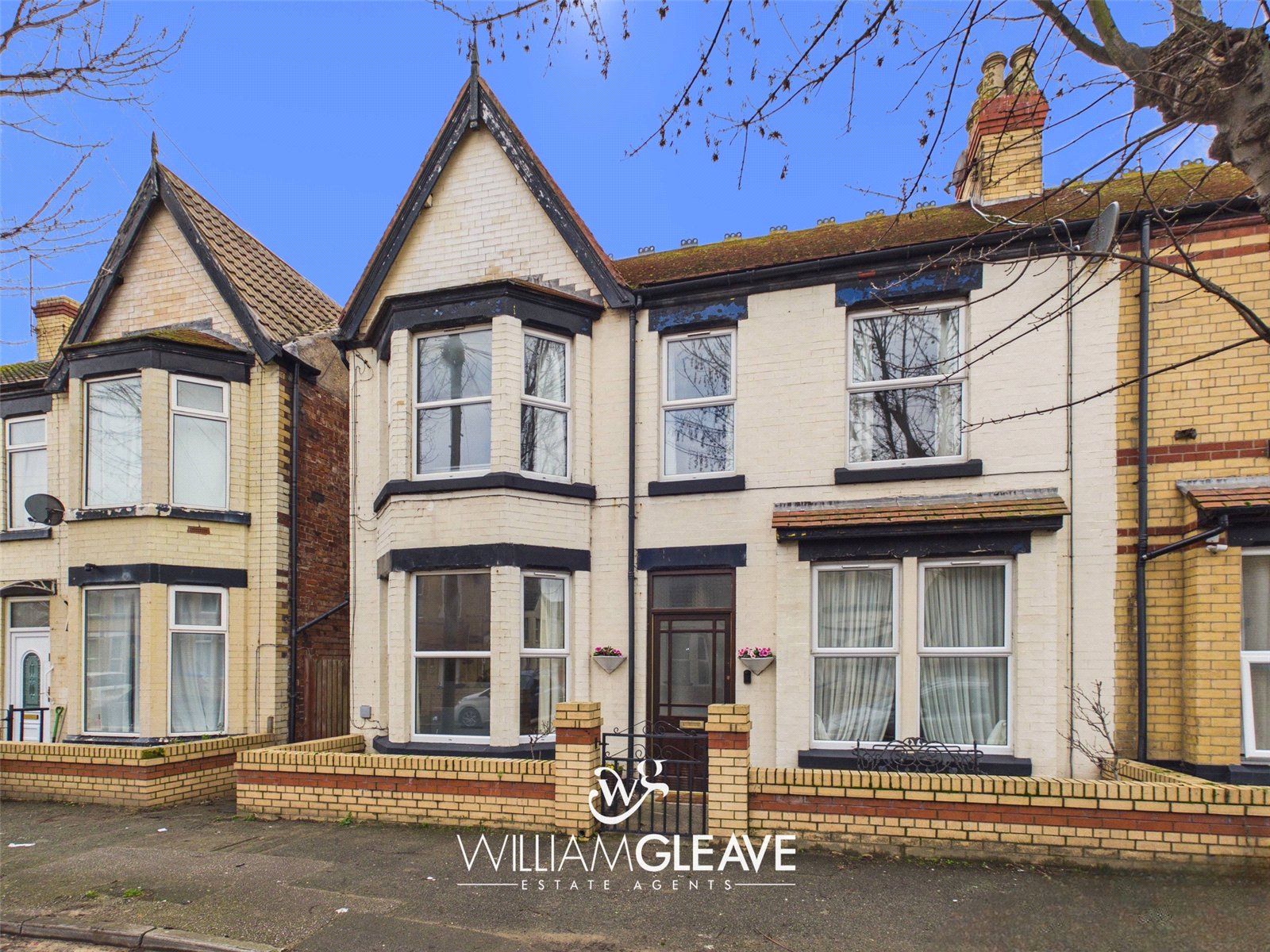 The principal living room is a large and welcoming living area, positioned to the front of the property. It features white painted walls and a grey carpet, creating a bright and neutral setting. Large double-glazed windows to the front allow plenty of natural light to fill the room, while a fireplace forms a focal point. There is ample space to accommodate a range of furniture, and the room also benefits from multiple power points and heating, ensuring both practicality and comfort.
