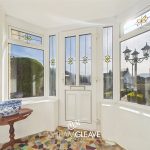 The property is entered through an enclosed porch, finished with attractive tiled flooring and a frosted wooden door that leads into the main entrance hallway. The hallway provides access to the main living areas of the home, the two bedrooms and the family bathroom, creating a practical and well-connected layout from the moment you step inside.