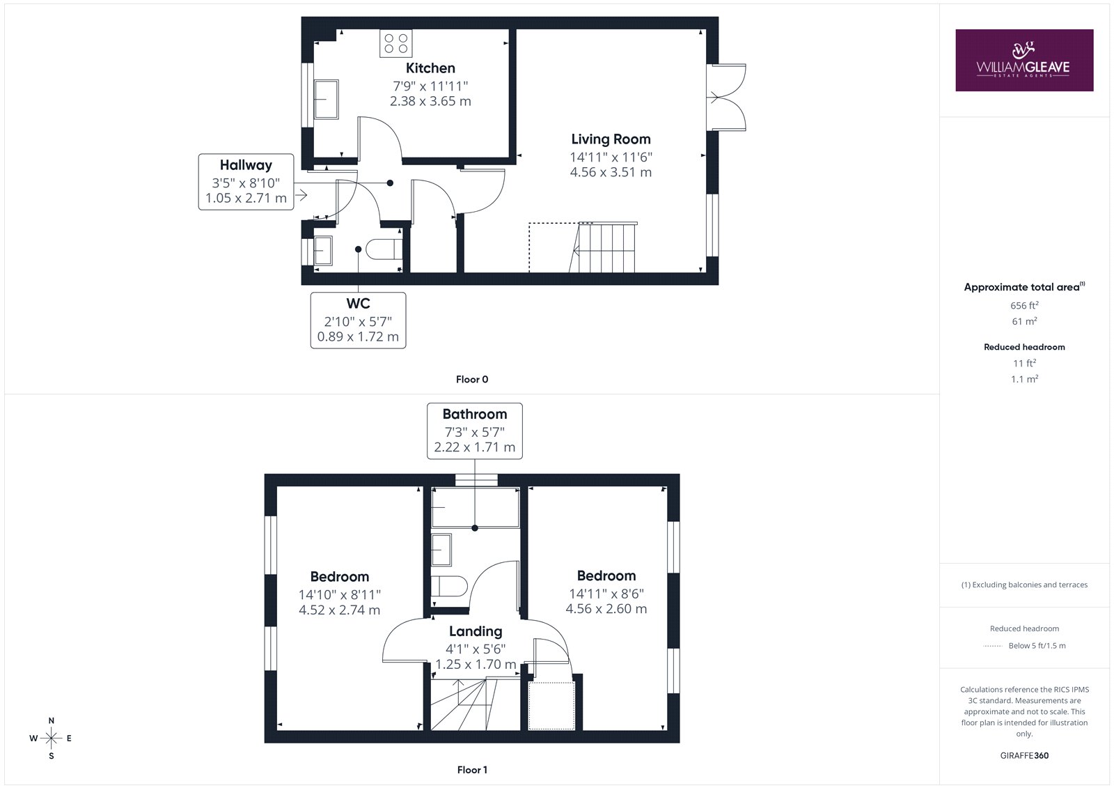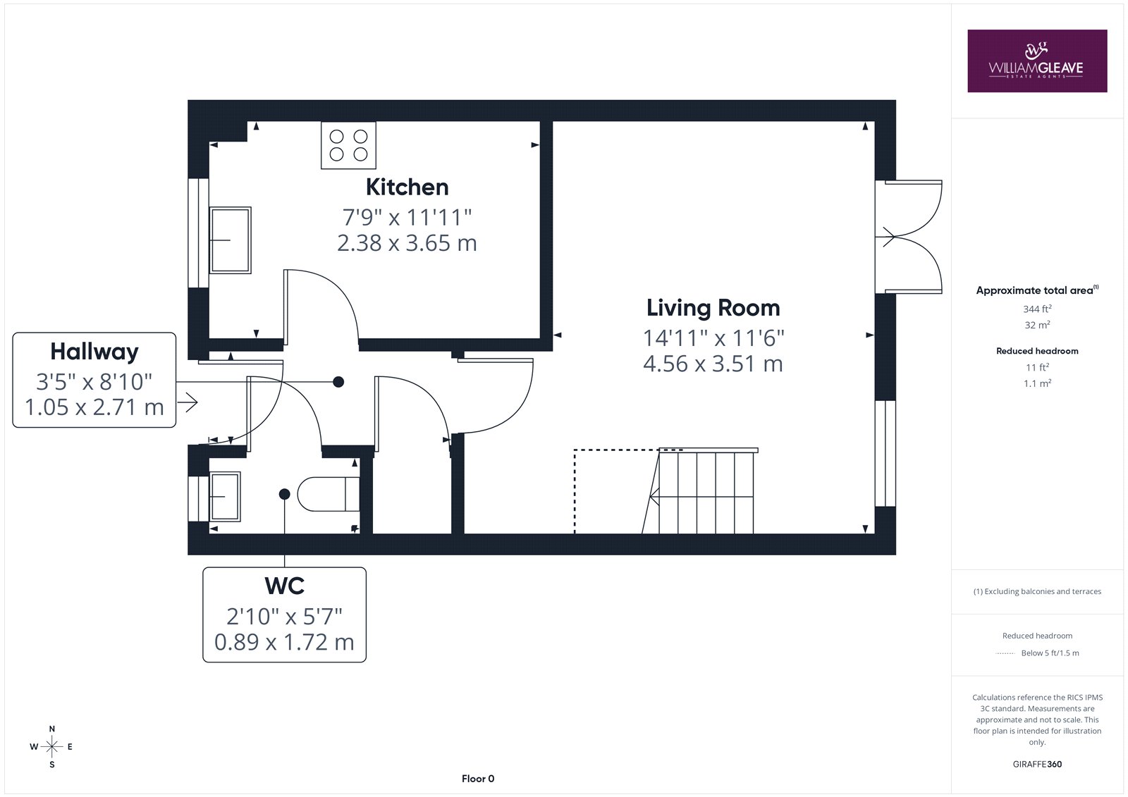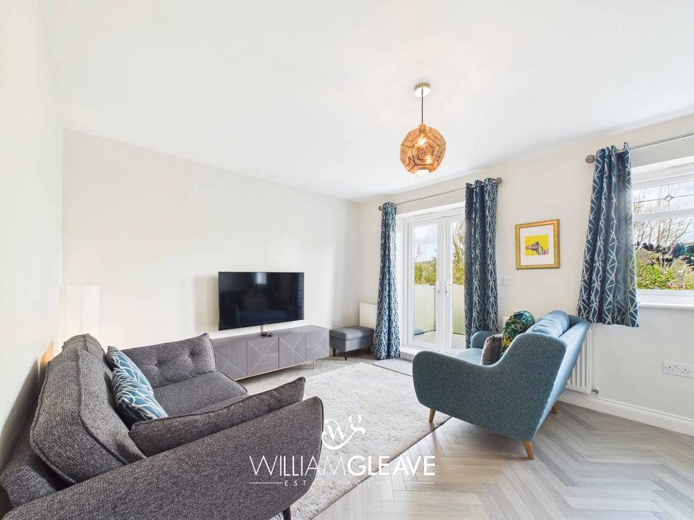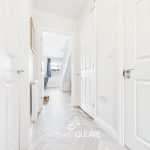 You enter the property through a composite PVC frosted door into the hallway, which provides access to a storage cupboard, the downstairs WC, the kitchen, and the living space. The hallway also includes a radiator and power point.
