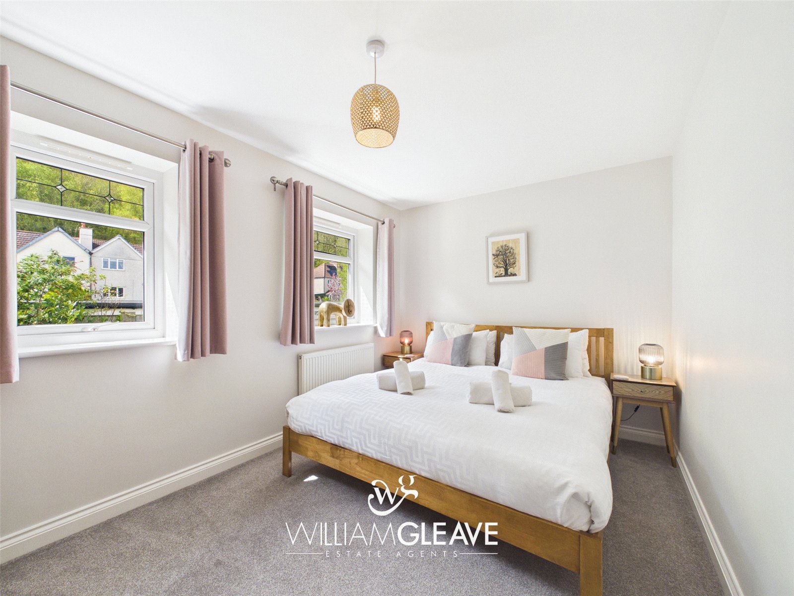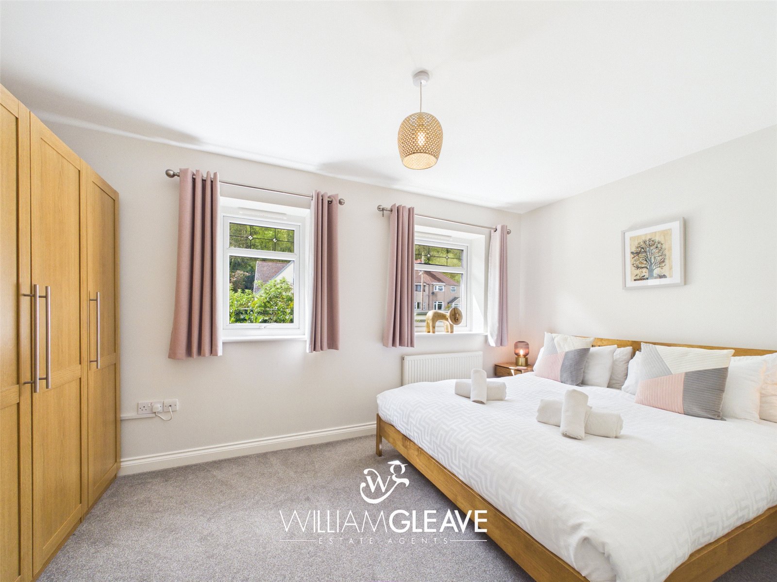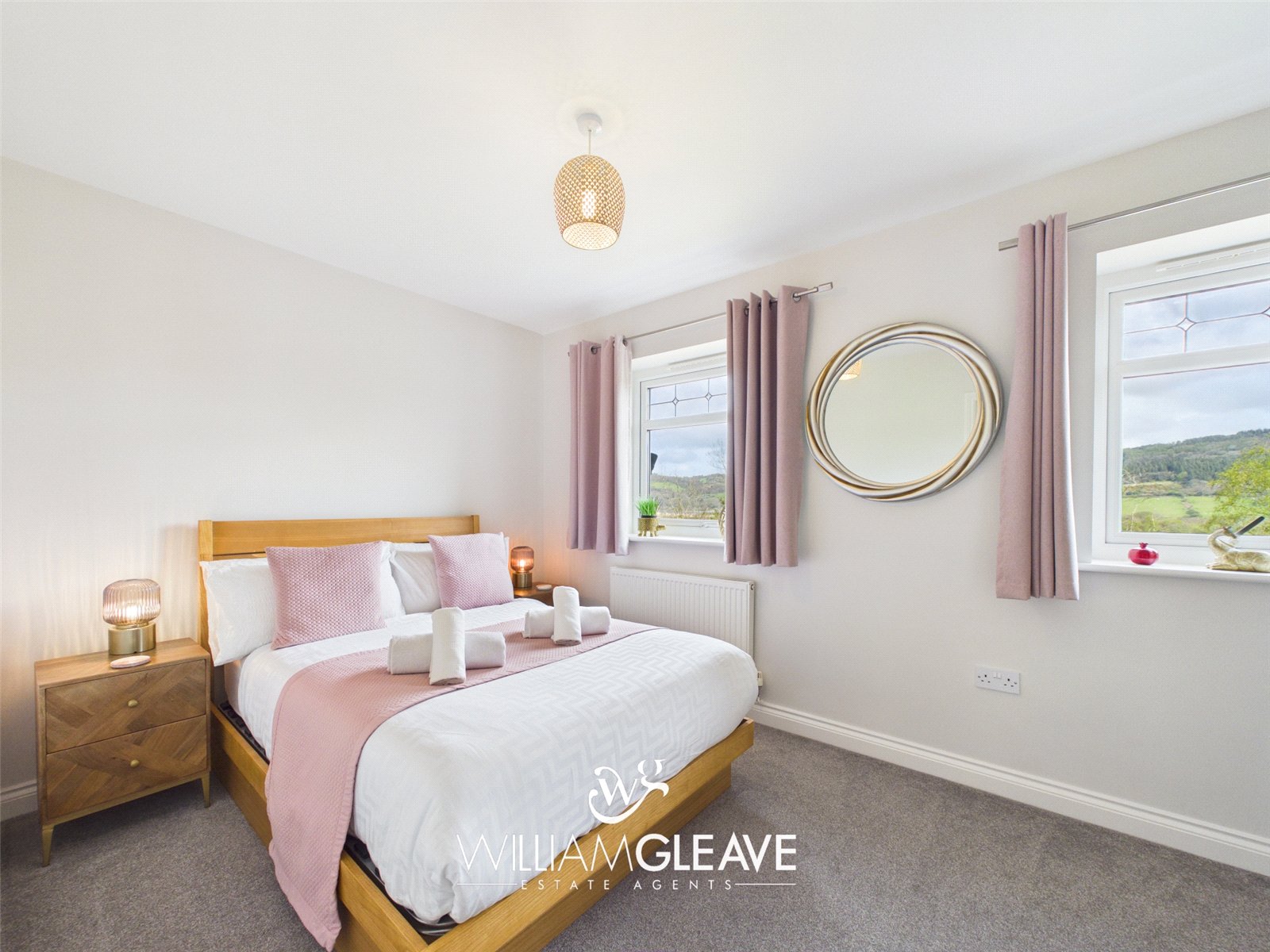 The second bedroom is another well-proportioned double bedroom, offering space for a double bed and essential furnishings. Two double-glazed windows on the rear elevation provide lovely views. The room also benefits from a built-in storage cupboard, carpeted flooring, ample power points, and a radiator.