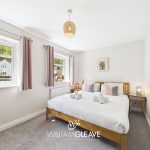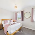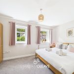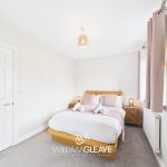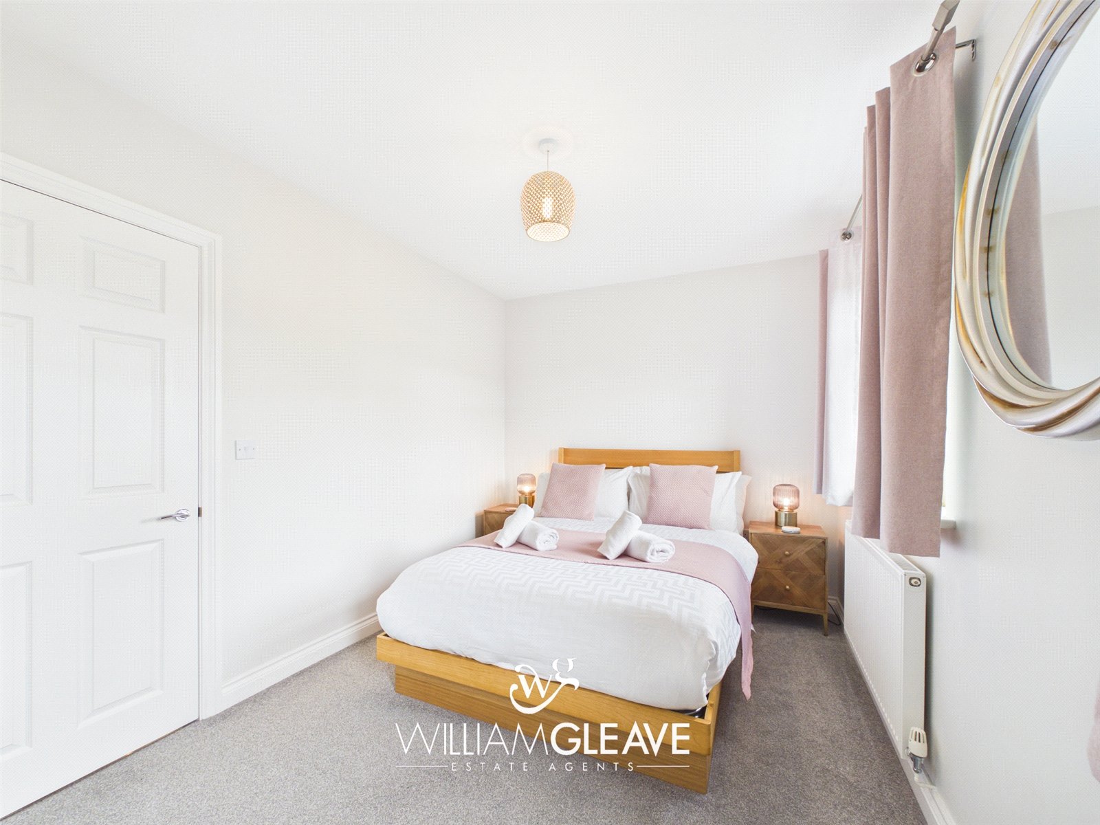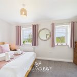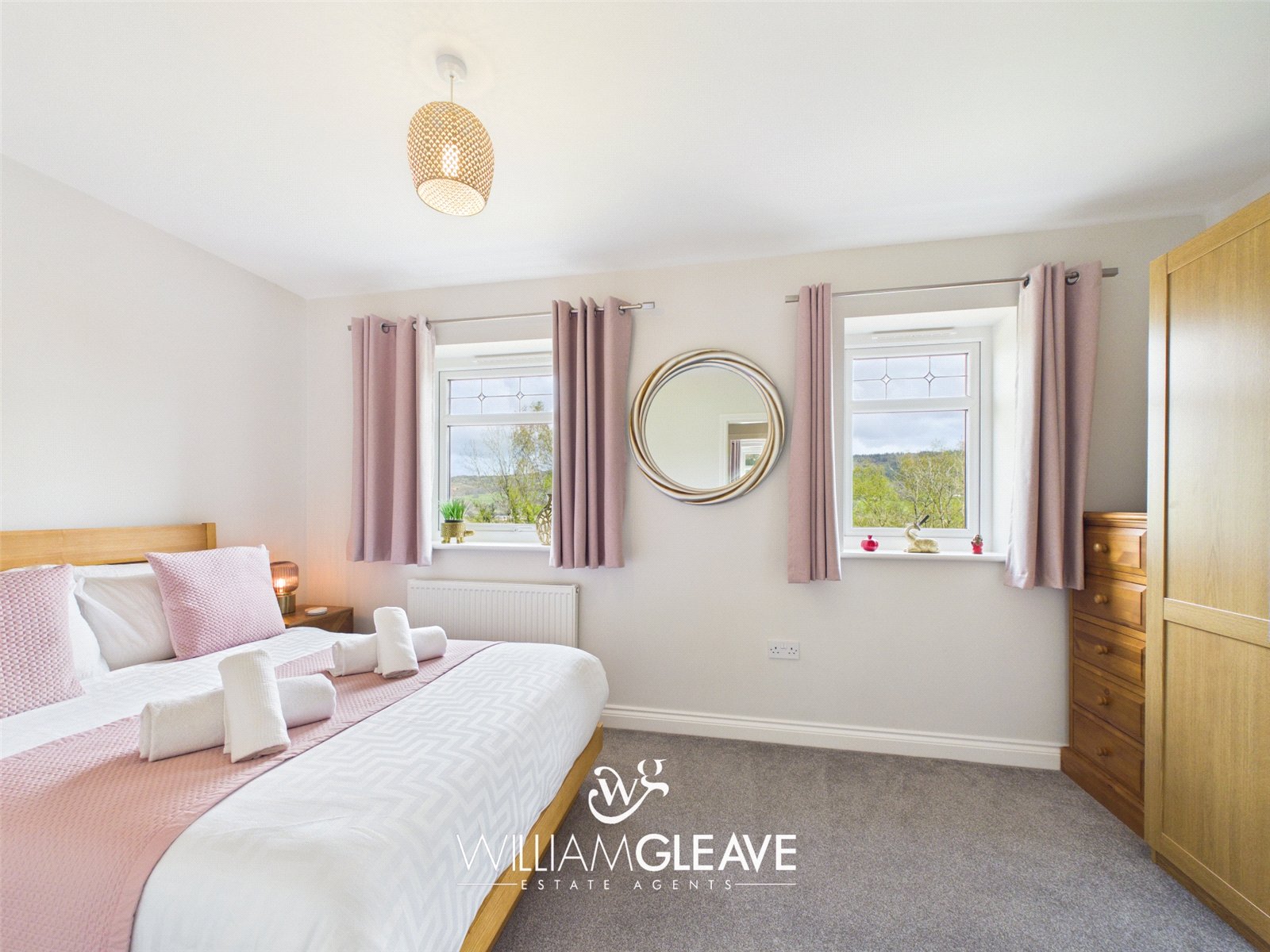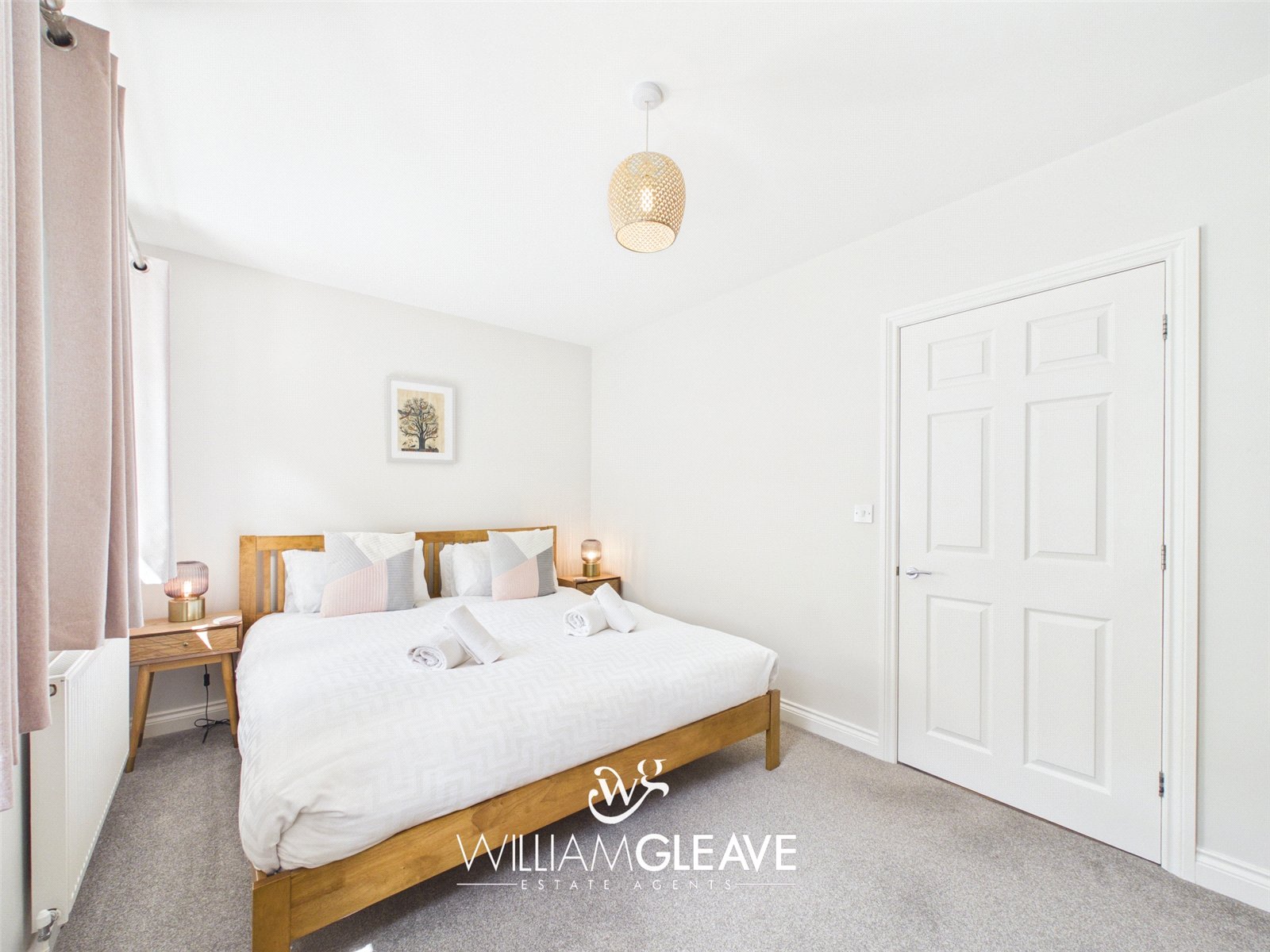 The second bedroom is another well-proportioned double bedroom, offering space for a double bed and essential furnishings. Two double-glazed windows on the rear elevation provide lovely views. The room also benefits from a built-in storage cupboard, carpeted flooring, ample power points, and a radiator.