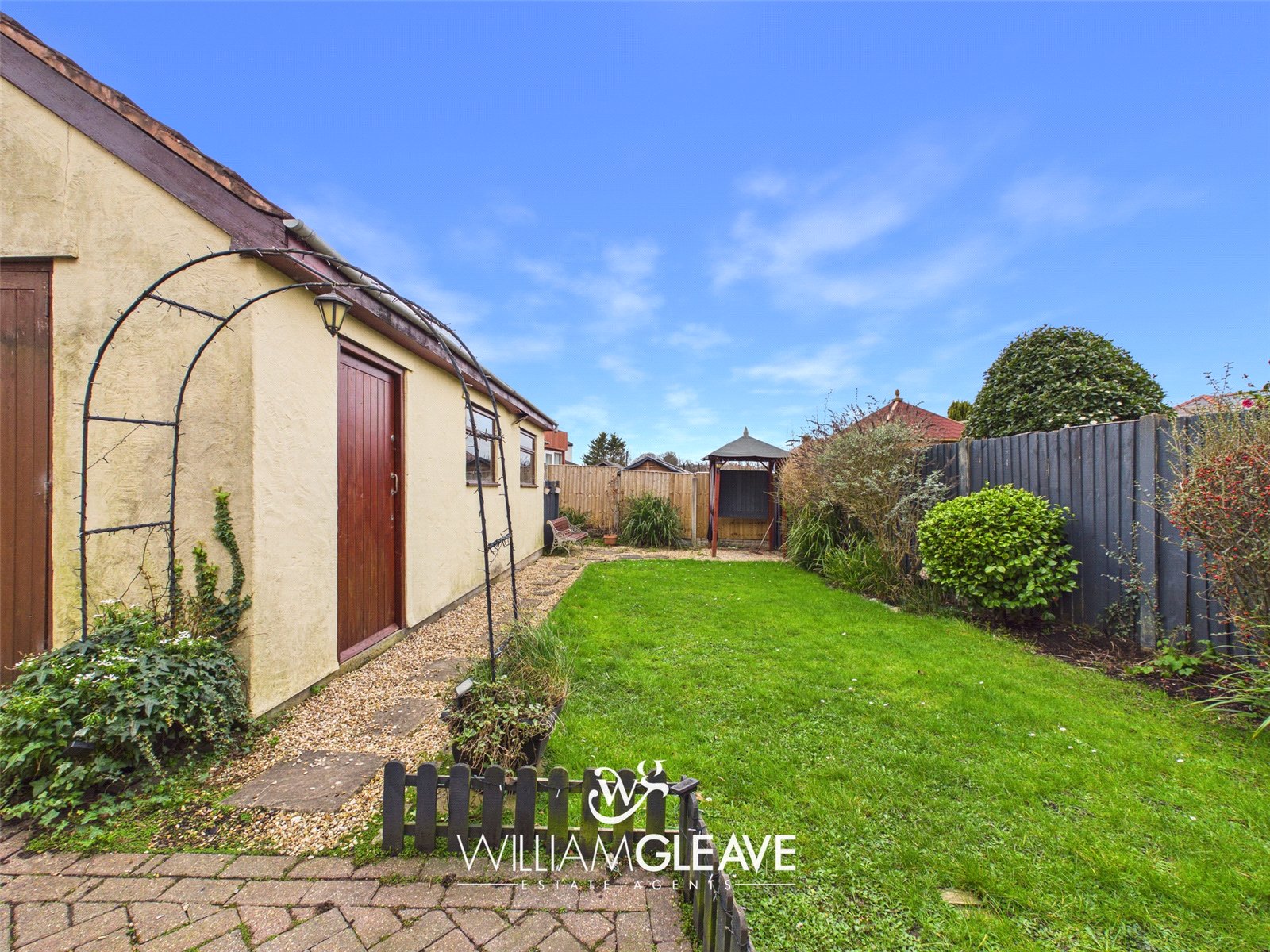 Rear - The rear garden offers access to the large, detached garage and is mainly laid to lawn. A pathway of golden gravel and slabs leads to a further gravelled area with a charming pergola, surrounded by established flower and shrub borders. Additional space at the rear of the garage provides a convenient area for a greenhouse or storage.
