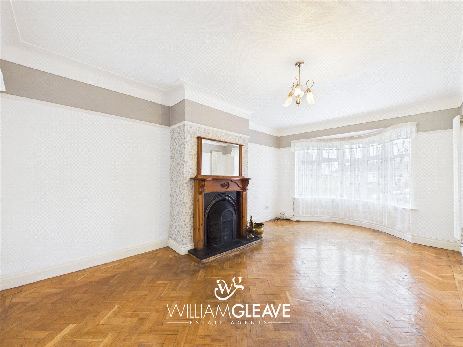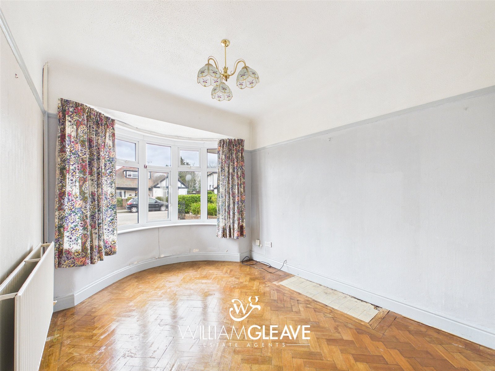 Double-glazed Bay window to the front elevation, allowing for plenty of natural light. Features include a radiator, TV and power points, a decorative picture rail, and attractive parquet flooring.