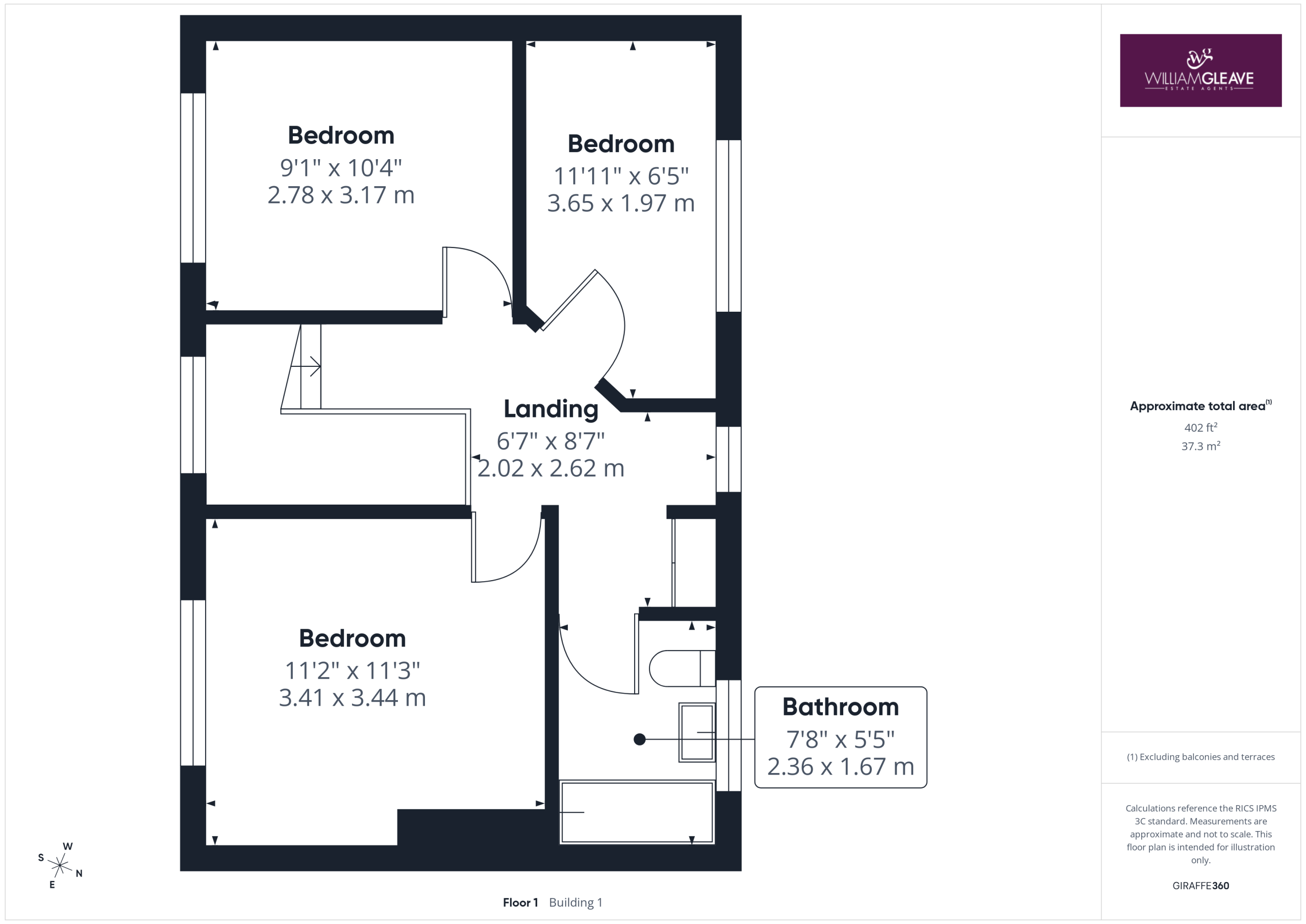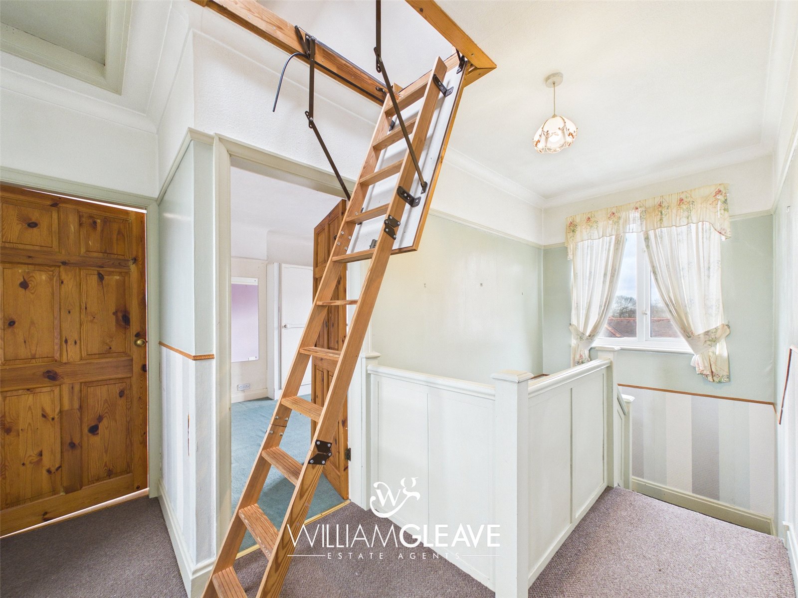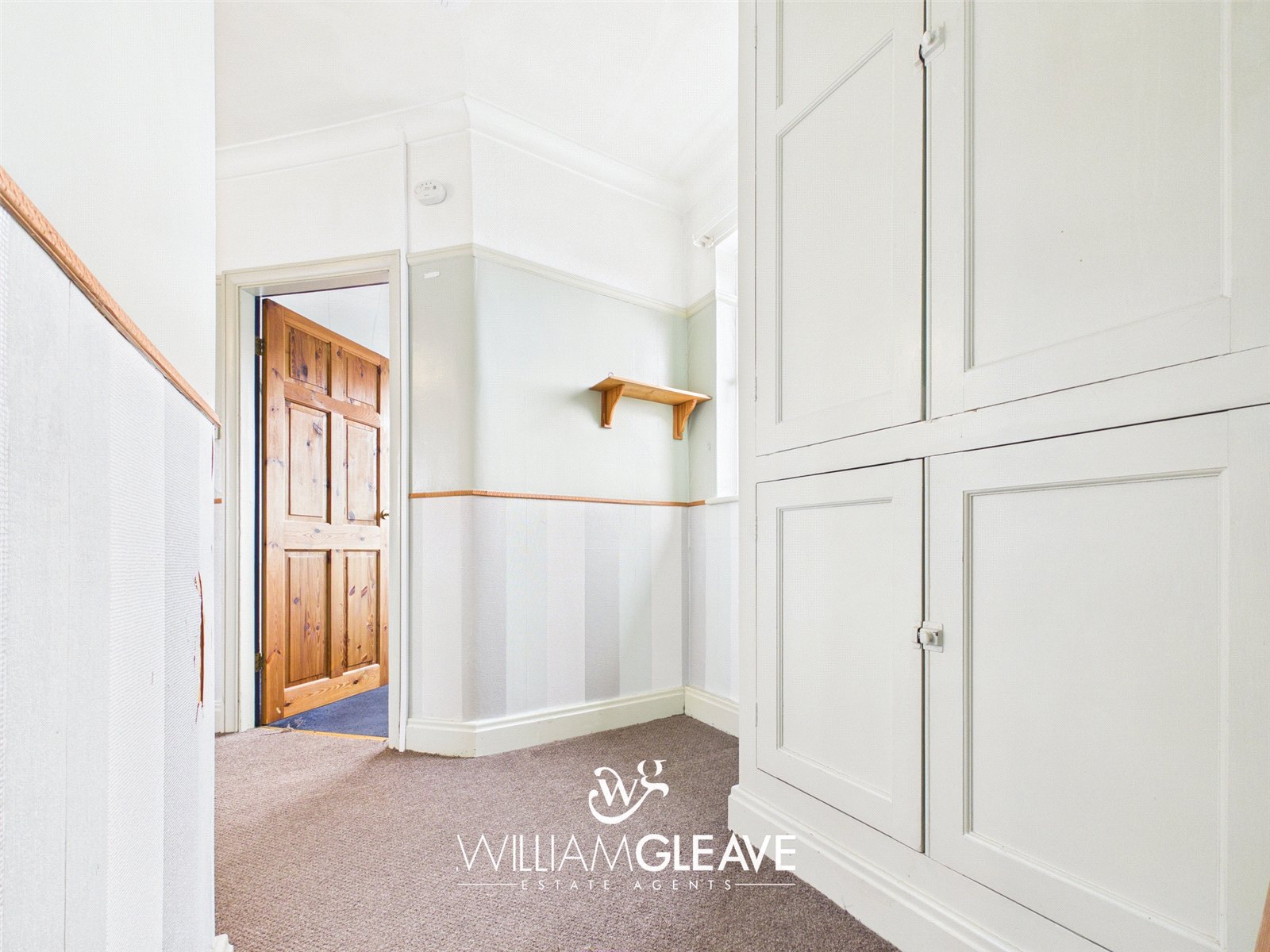 Double-glazed windows to both the front and rear elevations, providing excellent natural light. Features include a built-in storage cupboard housing the ‘Worcester’ combination boiler, power points, and access to the loft via a wooden pull-down ladder. Doors lead to all first-floor rooms.