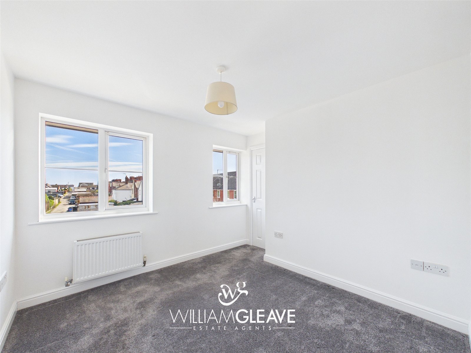 A bright dual-aspect room featuring two windows to the front elevation, allowing for plenty of natural light. The room also benefits from a useful storage cupboard, a radiator, power points, and a television point.