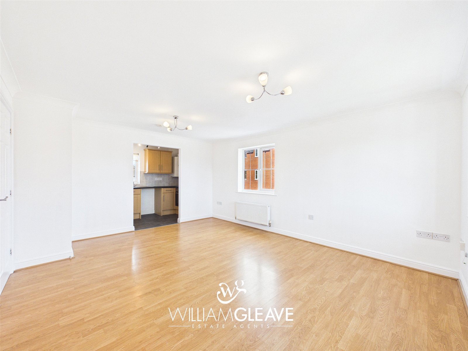 A bright and spacious open-plan living area, benefitting from windows to both the front and side elevations, allowing for an abundance of natural light. The generous layout provides ample space for both relaxing and dining, and is complemented by wood-effect flooring, radiators, power points, and a television point. An opening leads seamlessly through to the kitchen.