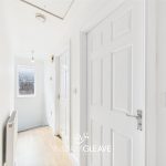 The property benefits from a loft access point with a pull-down ladder, along with wood-effect flooring, a radiator, and a frosted window to the side. There is also a power point, with doors leading to the open plan living space, both bedrooms, and the bathroom.