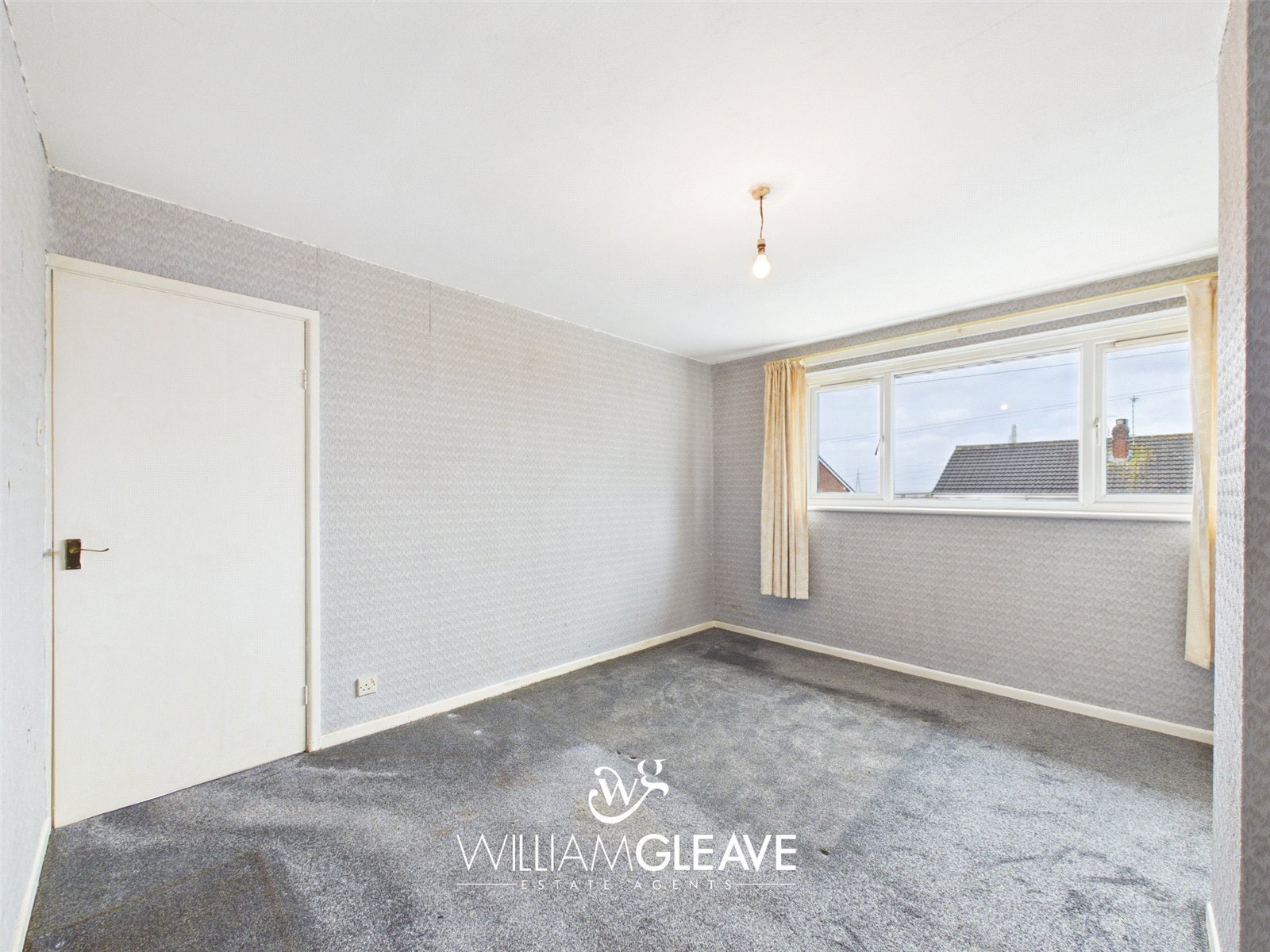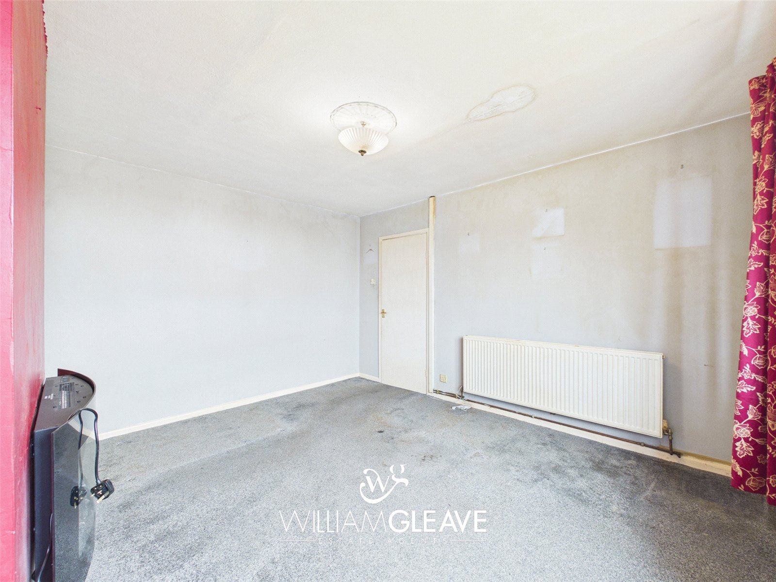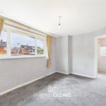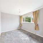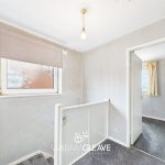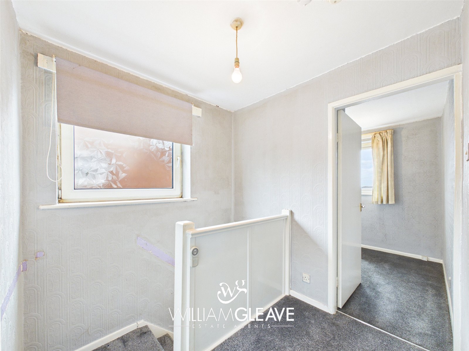 A frosted window to the side elevation provides natural light, with doors leading off to the bedrooms and bathroom.