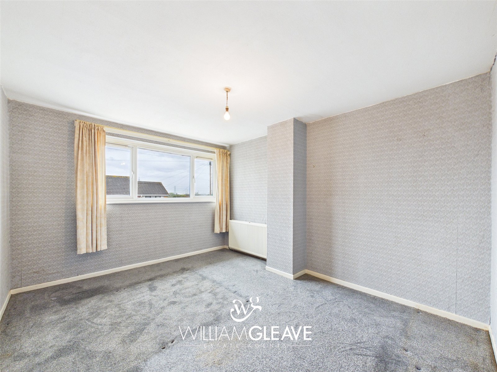 A double bedroom with a window to the front elevation, along with a radiator and a power point.